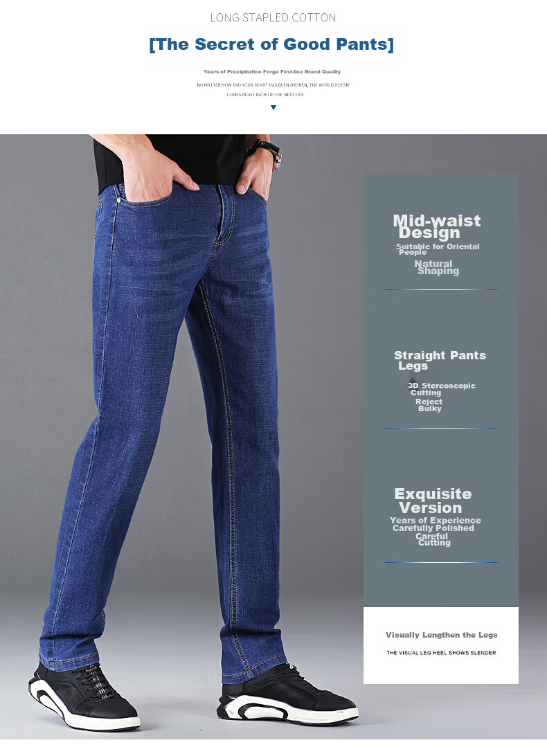 **Details:** Exquisite Buttons, Quality Zippers, Stylish Back Pockets, Neat Stitching