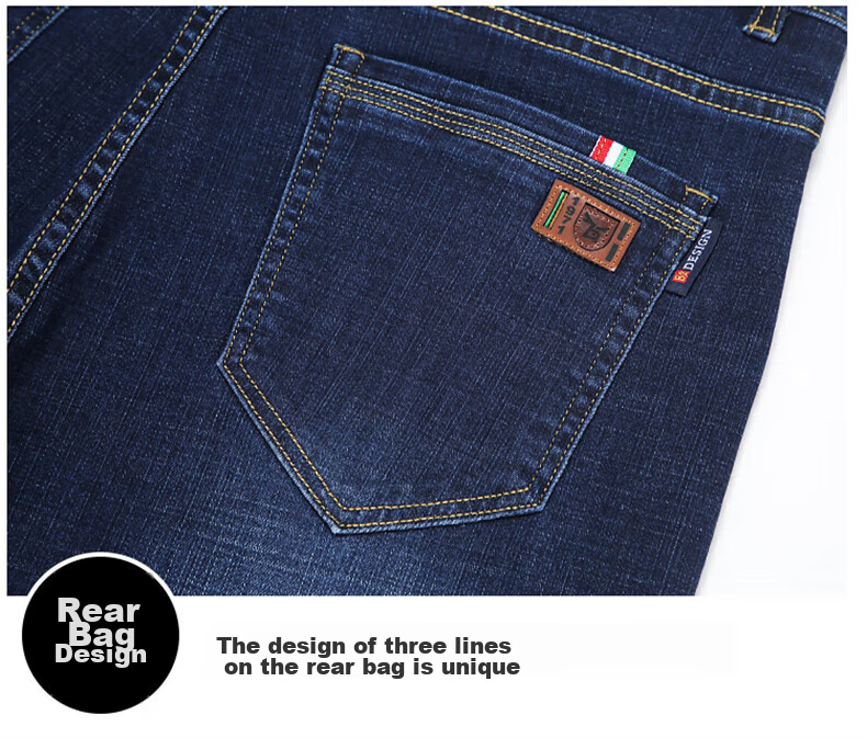 **Features:** Elastic waistband, stylish three-line pocket design, unique three-line back pocket design, neat and uniform stitching.