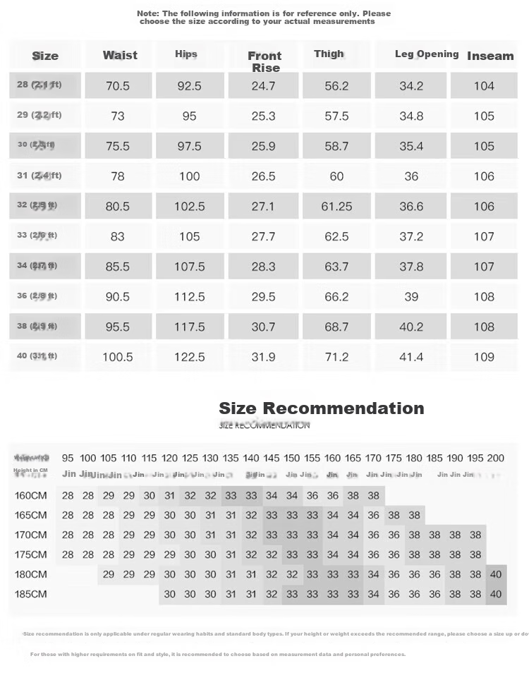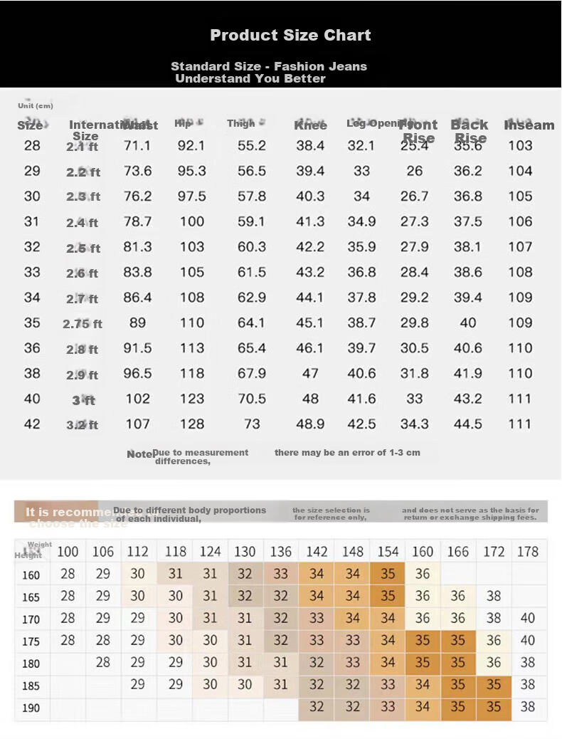 **Note:** Measurements may vary by 1-3 cm. Please refer to the size chart and choose accordingly based on your body proportions.