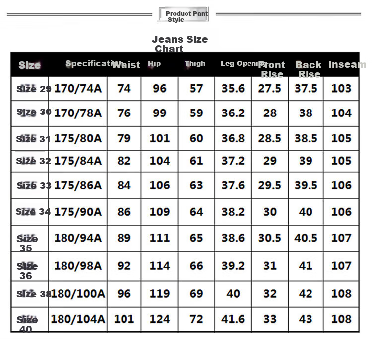 **Size Range:** 29-40