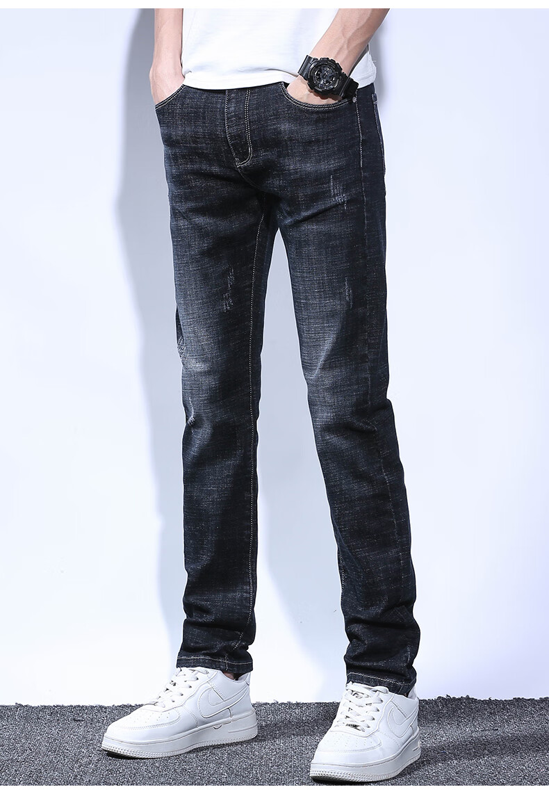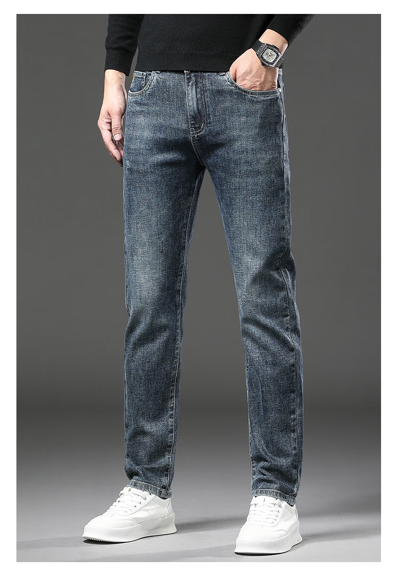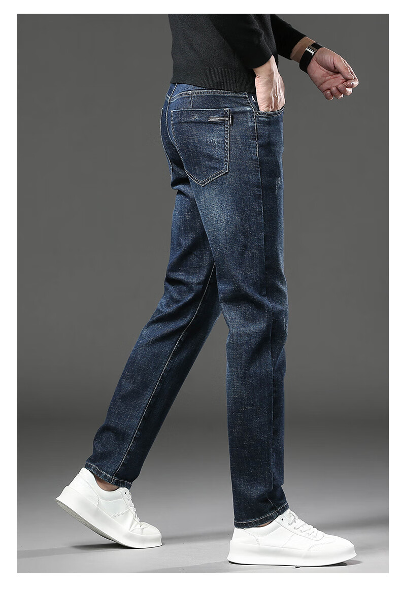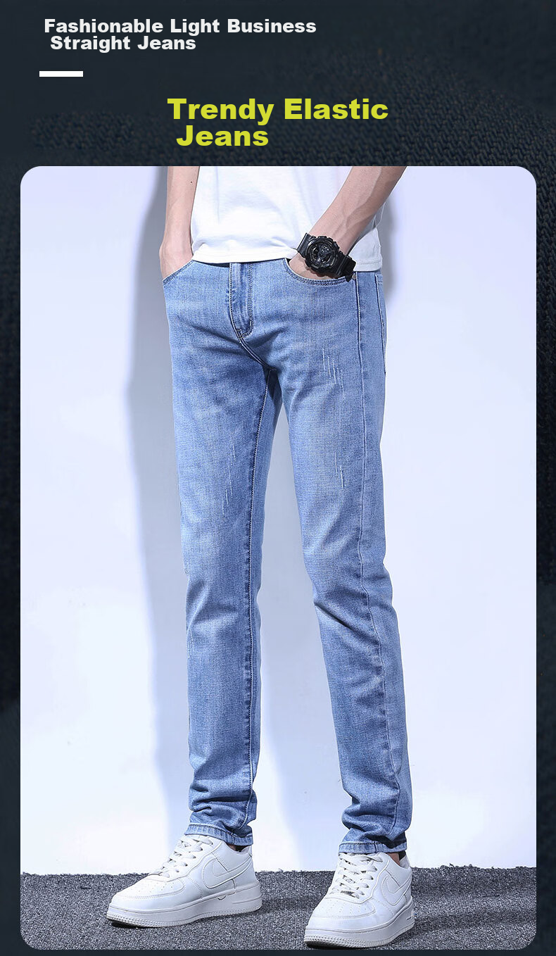 **Model Display:** Showcasing the jeans in Deep Blue and Blue Gray
