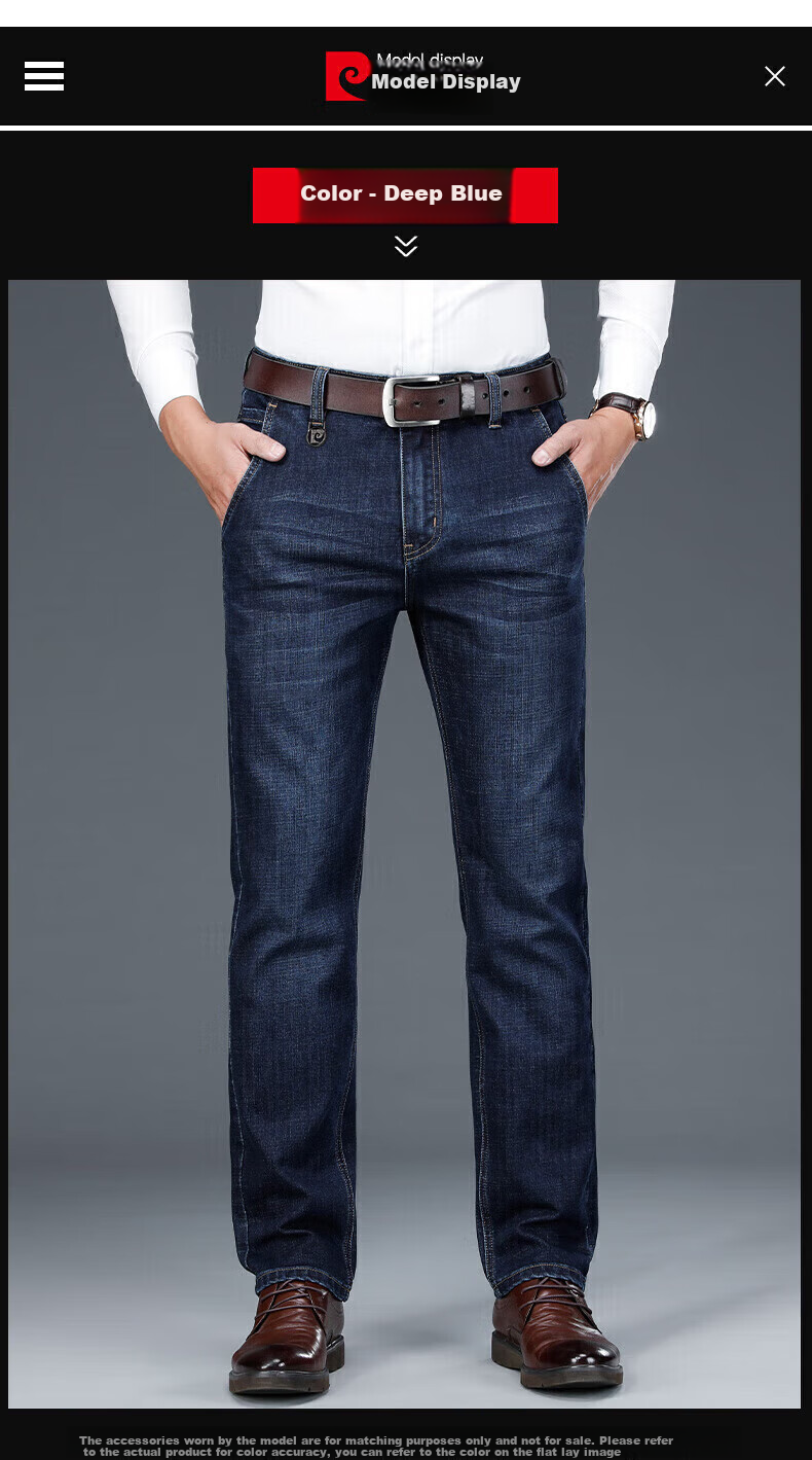**Model Display:** Colors available in dark blue and black. Accessories worn by the model are for display purposes only.