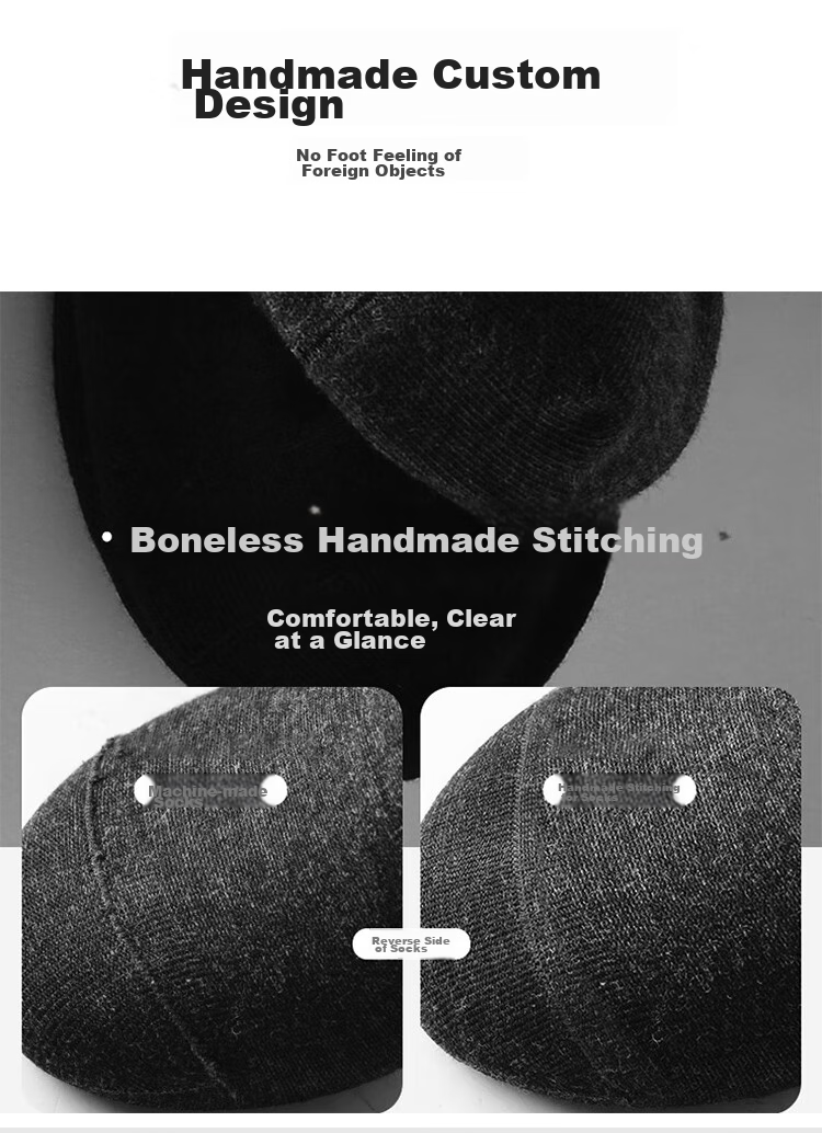 **Craftsmanship:** Hand-stitched, seamless, comfortable, machine-stitched socks, hand-stitched seams on the inside