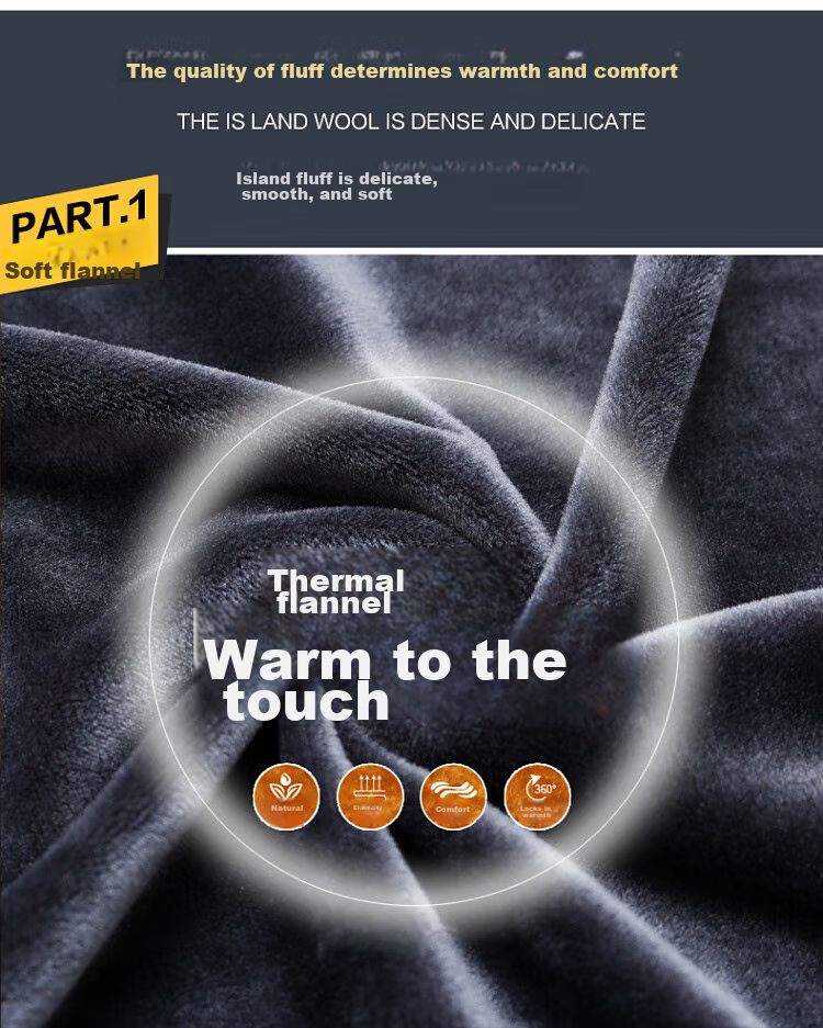 **Features:** Island wool for warmth and comfort, soft flannel fabric, high-quality craftsmanship, comfortable and breathable cotton blend fabric