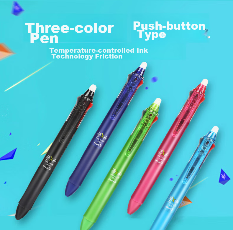 **Special Features:** Three erasable ink colors (Black, Red, Blue), approximately 145mm in length