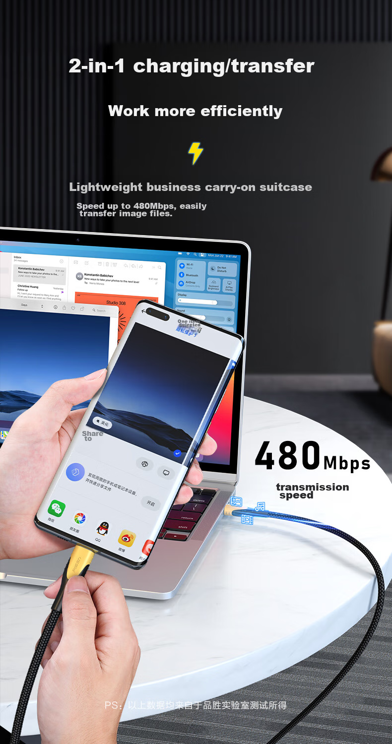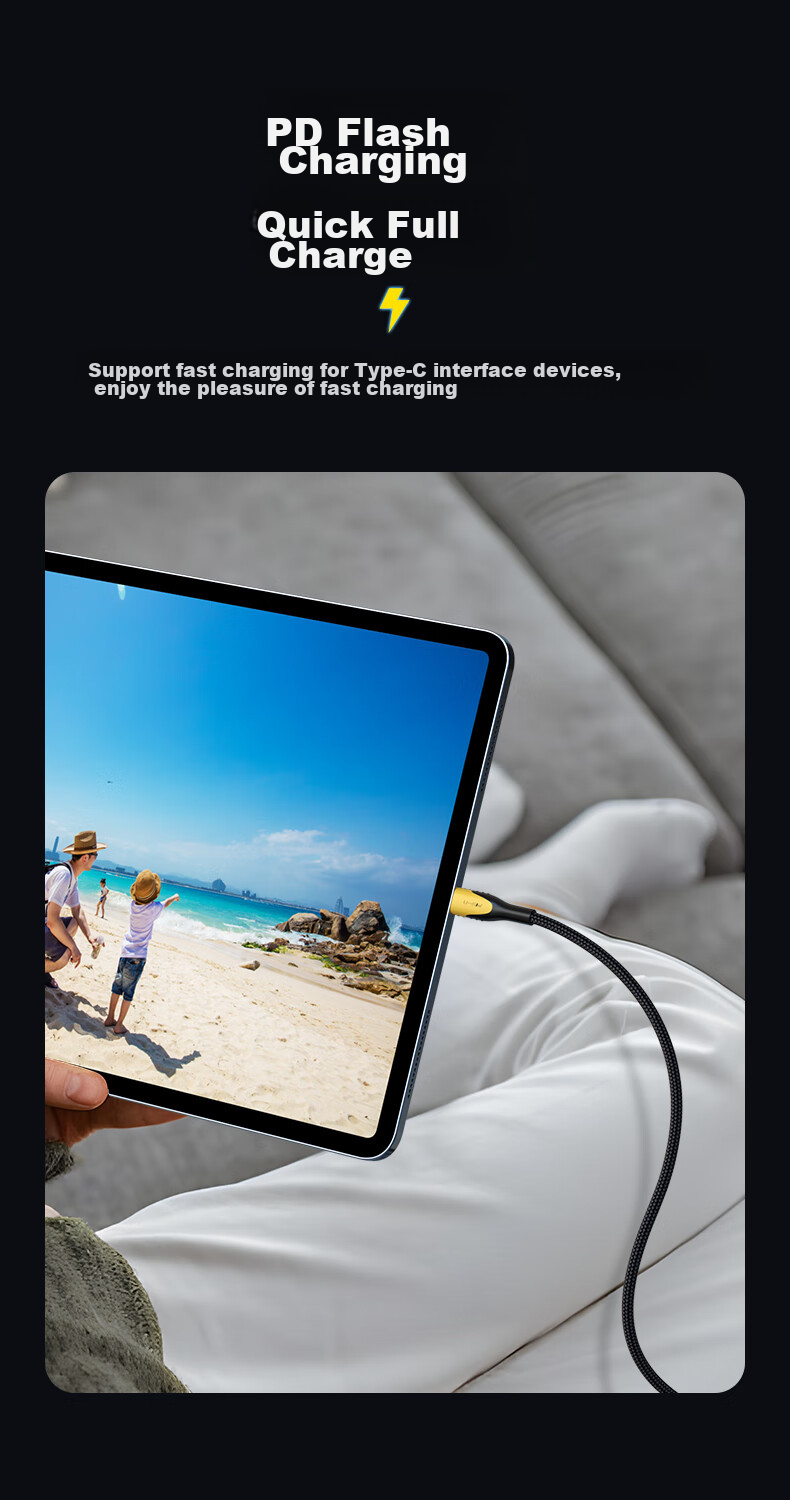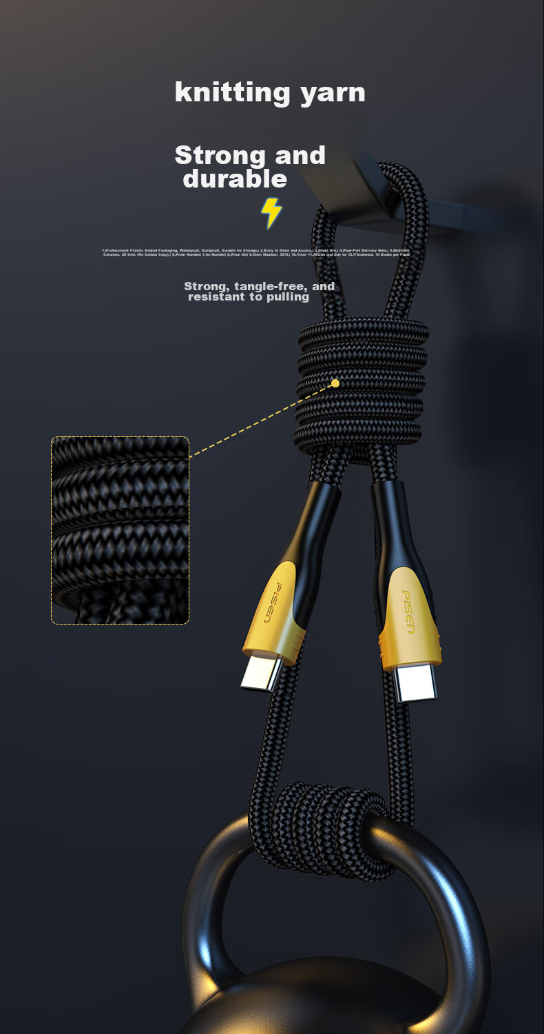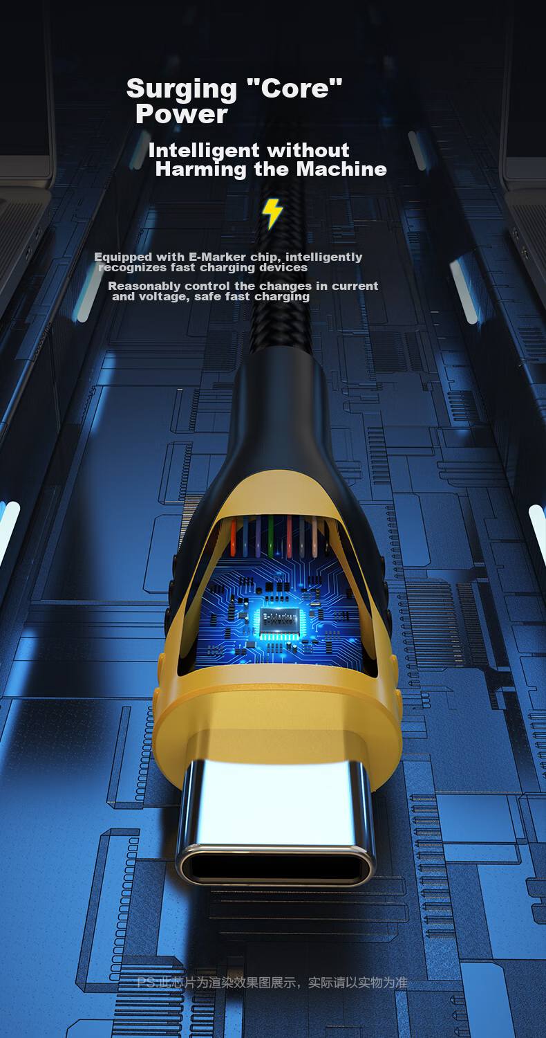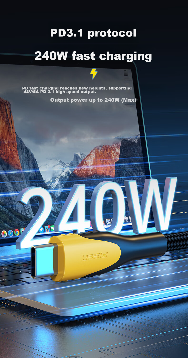 Features: E-Marker chip, PD3.1 protocol, intelligent fast charging, 480Mbps transmission speed, thickened wire core, high-density braided wire body