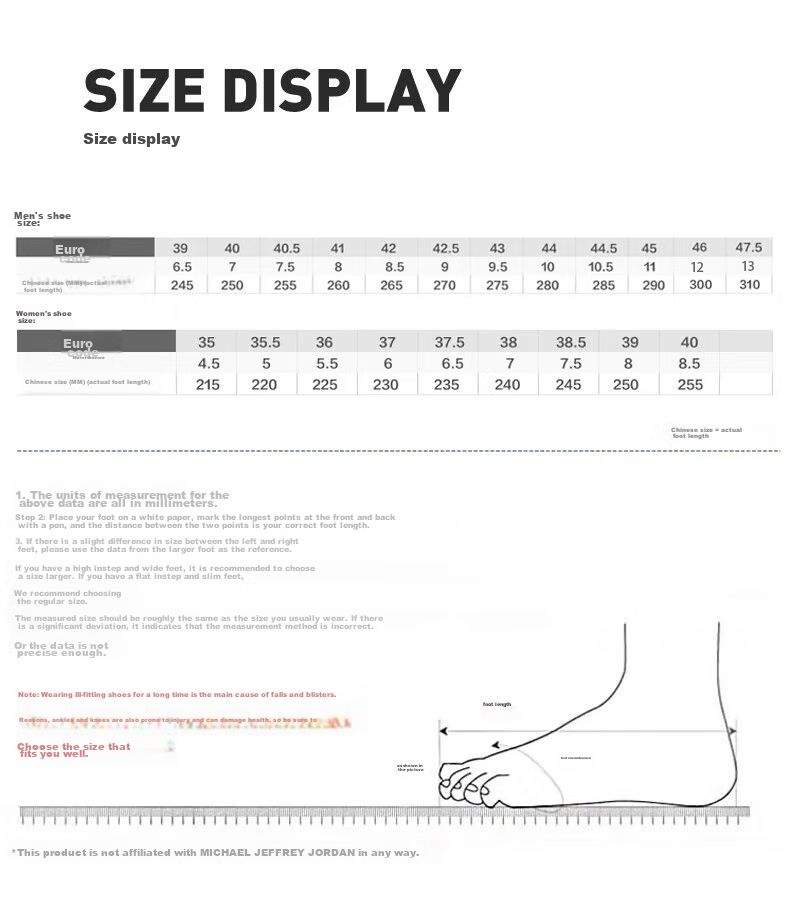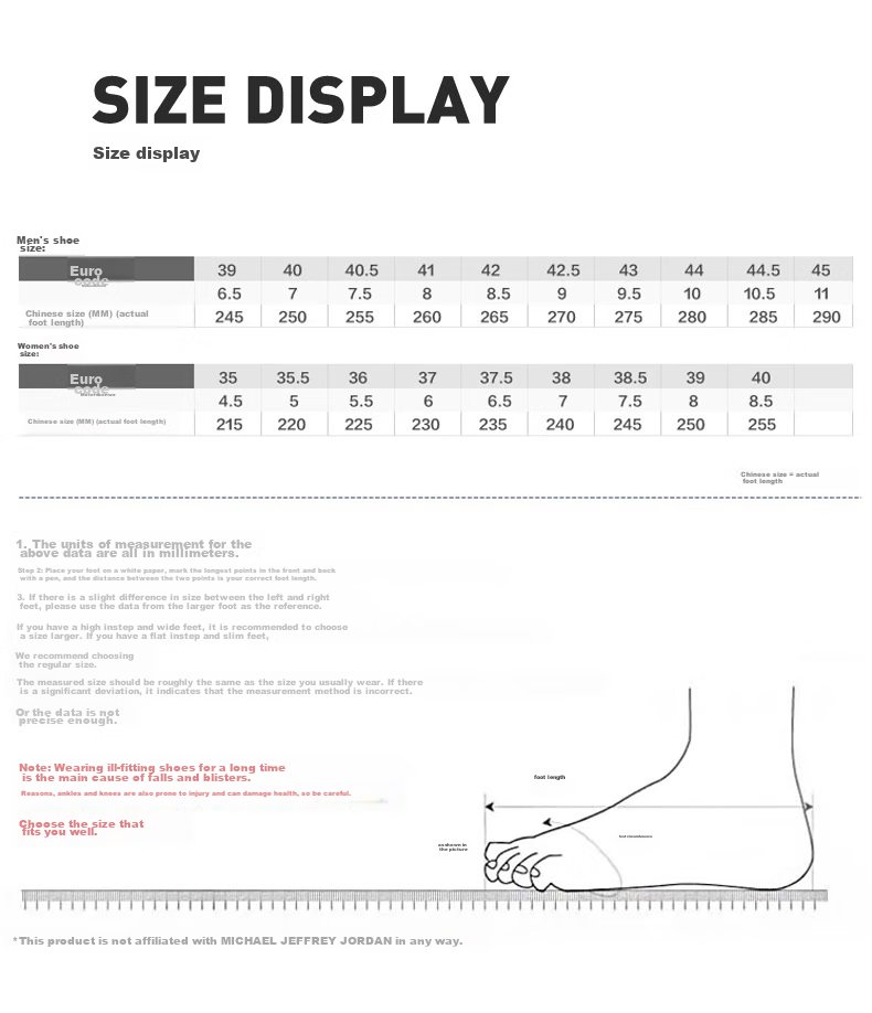 - Men's Sizes: EUR 39-47.5, US 6.5-13, China MM 245-310
