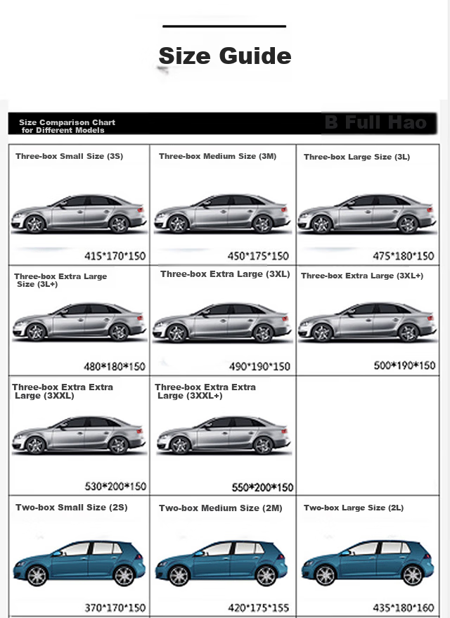 - Sedan Extra Extra Large (3XL): 490*190*150