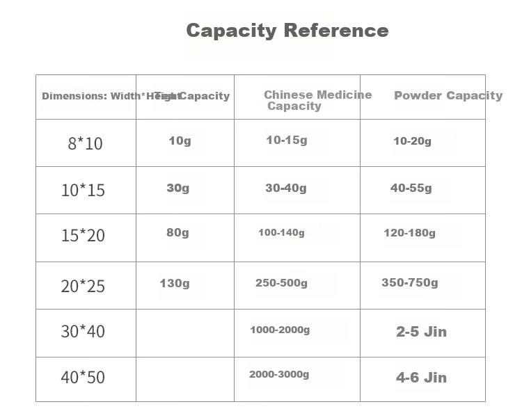 Chinese Medicine Capacity: 10*15 cm - 30 grams, 30-40 grams, 40-55 grams