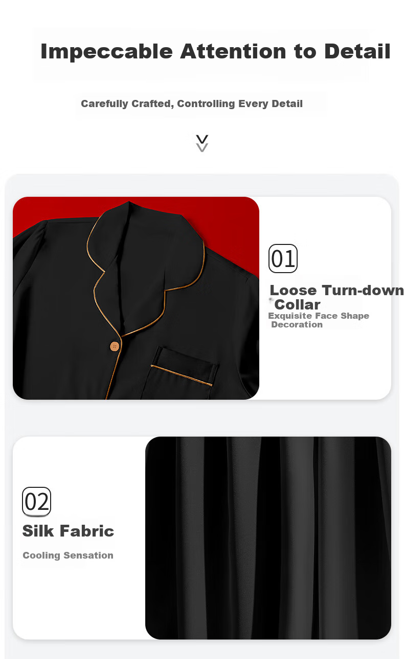 {SMOOTH}: Ice silk fabric, smooth and cool to the touch, luxurious silky texture, soft and cool against the skin, lightweight and breathable, easy to wash and quick-drying.