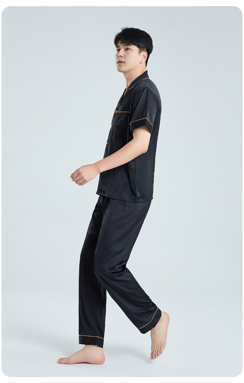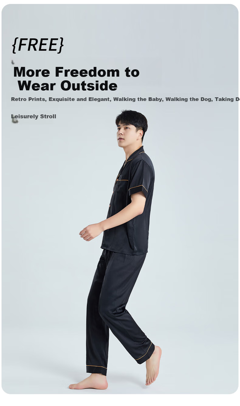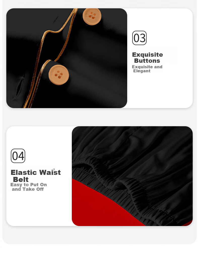 Impeccable attention to detail: V-neck design for a loose fit and elegant face shape, silk fabric for a cool touch, delicate buttons, elastic waistband for easy wearing.