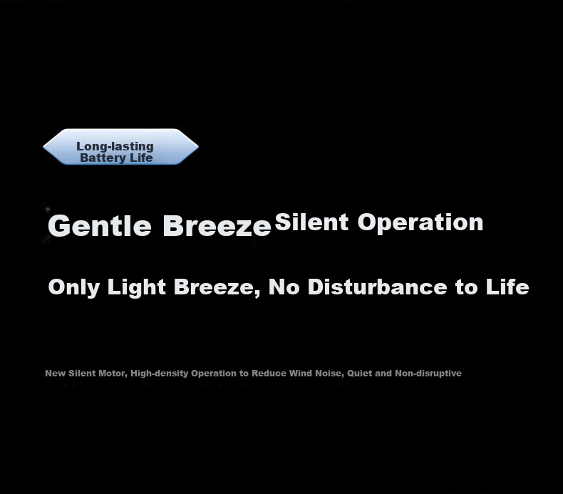 **Battery Life:** Provides long-lasting cooling with silent operation, thanks to a new silent motor that reduces noise during operation.