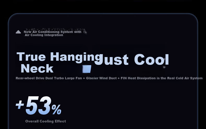 **Cooling System:** Features a new air conditioning and cold fusion system, with a rear-drive dual-turbo large fan, iceberg air duct, and FIN heat dissipation for an effective cooling effect of 53%.