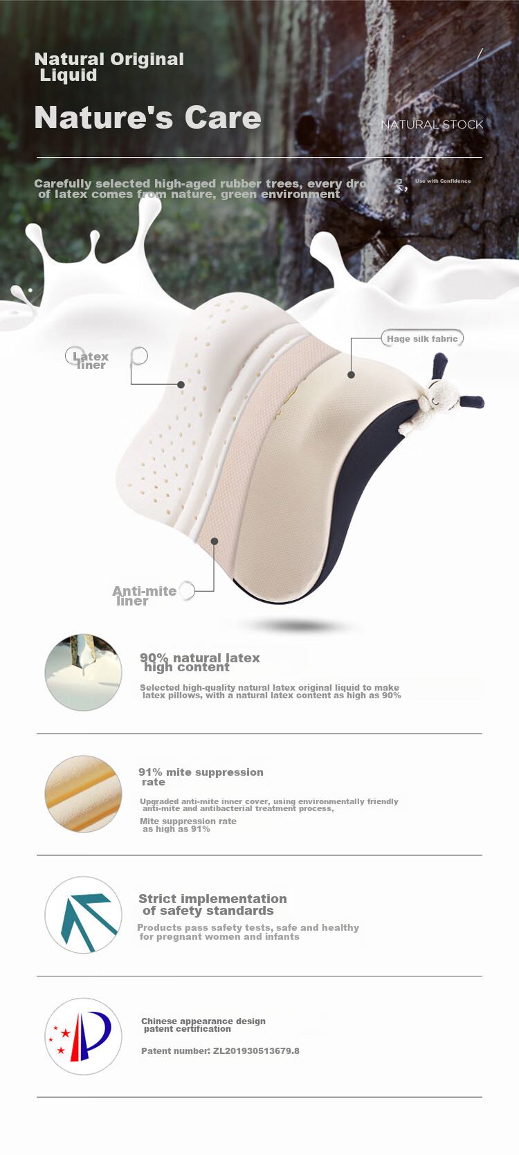 **Maintenance and Washing Instructions for Natural Latex Pillow Core:**
