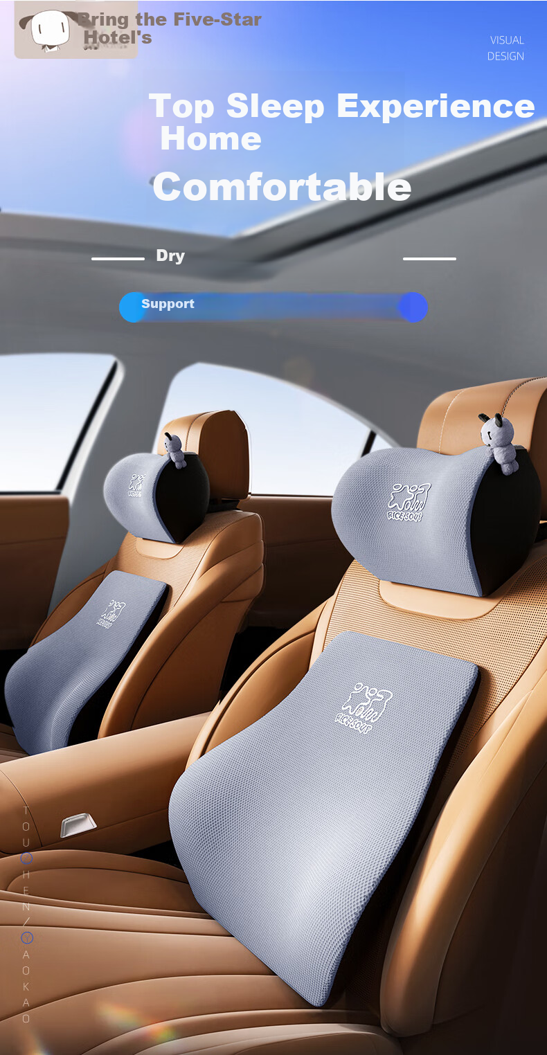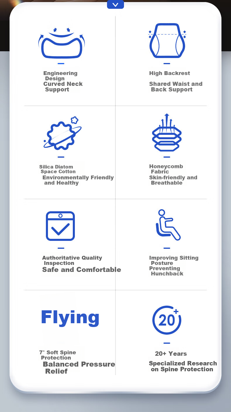 - Visual design with ergonomic considerations for neck and lumbar support