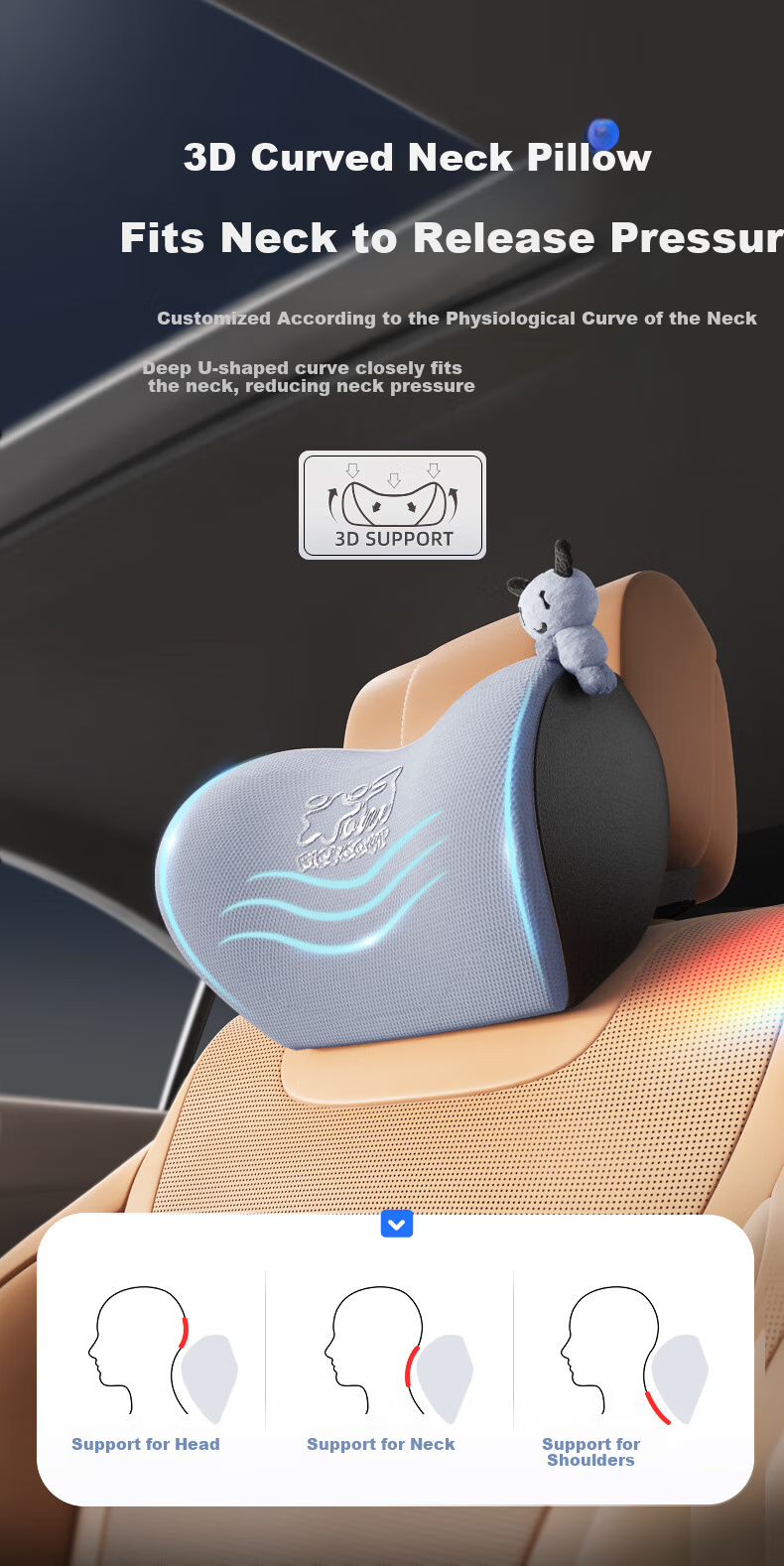 - 3D curved neck pillow for pressure relief and neck alignment