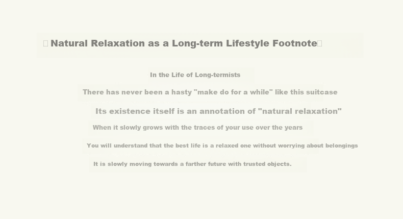 - **Description:** Sets a new standard for front-opening/large capacity luggage. Designed for narrow spaces, can expand by 20% for added surprise space. Occupies 50% less space while providing huge capacity. Easy to open in small spaces, even for women. Meets standard for checked baggage weight even when fully loaded. Embraces the philosophy of long-term natural relaxation in life.