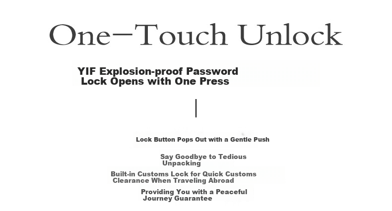 6. **One-Touch Unlock:** YIF explosion-proof password lock can be easily opened with a single touch, providing quick access and peace of mind during international travel.