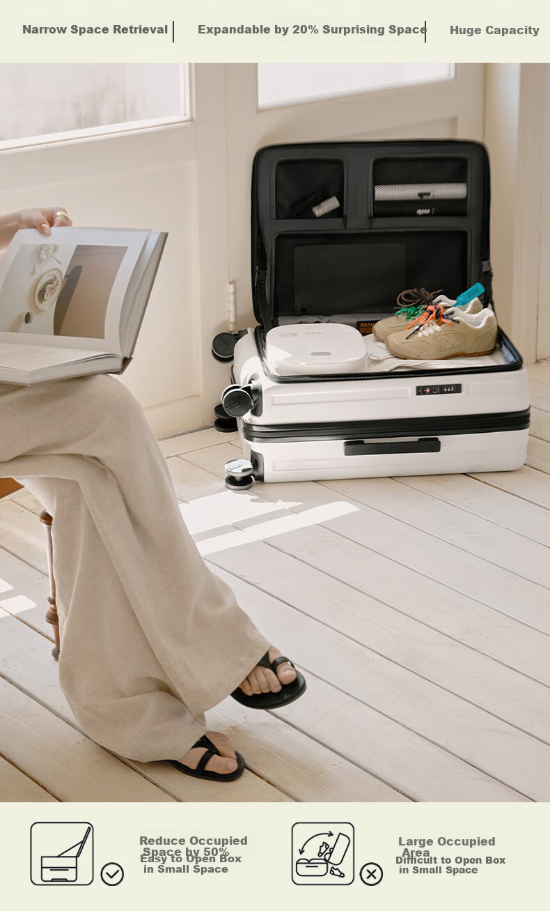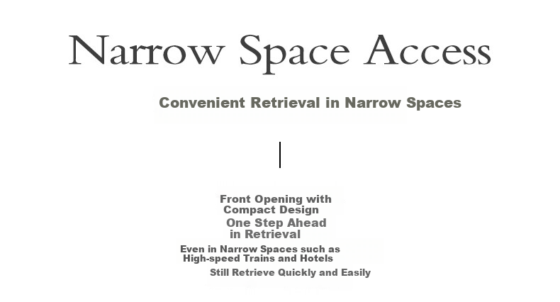 1. **Narrow Space Access:** Convenient access to items in narrow spaces with a cleverly designed front opening. Ideal for quick retrieval in tight spaces like high-speed trains and hotels.