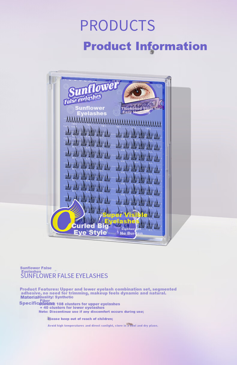 The Sunflower False Eyelashes set includes both upper and lower eyelashes for a complete and natural look. The segmented design allows for easy customization without the need for trimming, providing a versatile and effortless makeup experience.