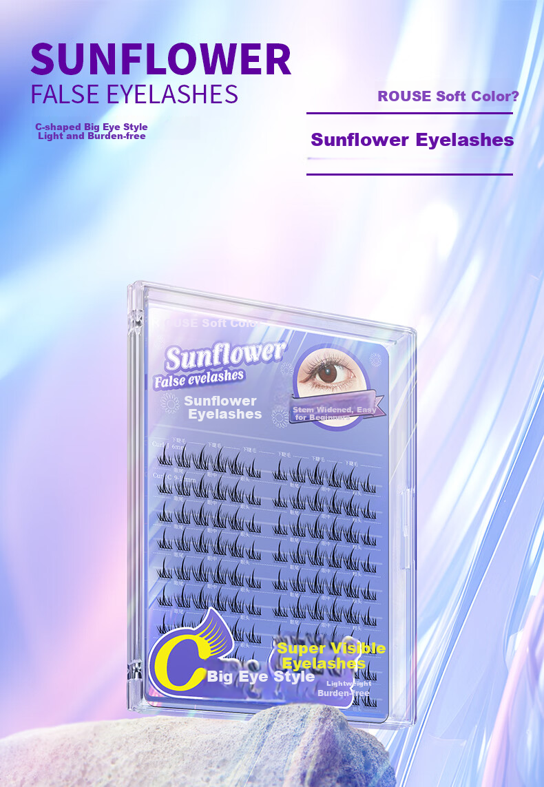 Features: Sunflower False Eyelashes are suitable for both beginners and experienced users. They provide a dramatic yet natural look, adding length and volume to the lashes for a captivating gaze.