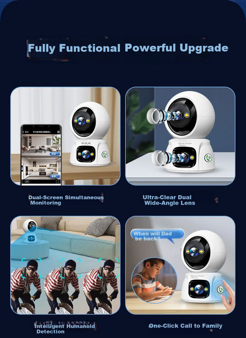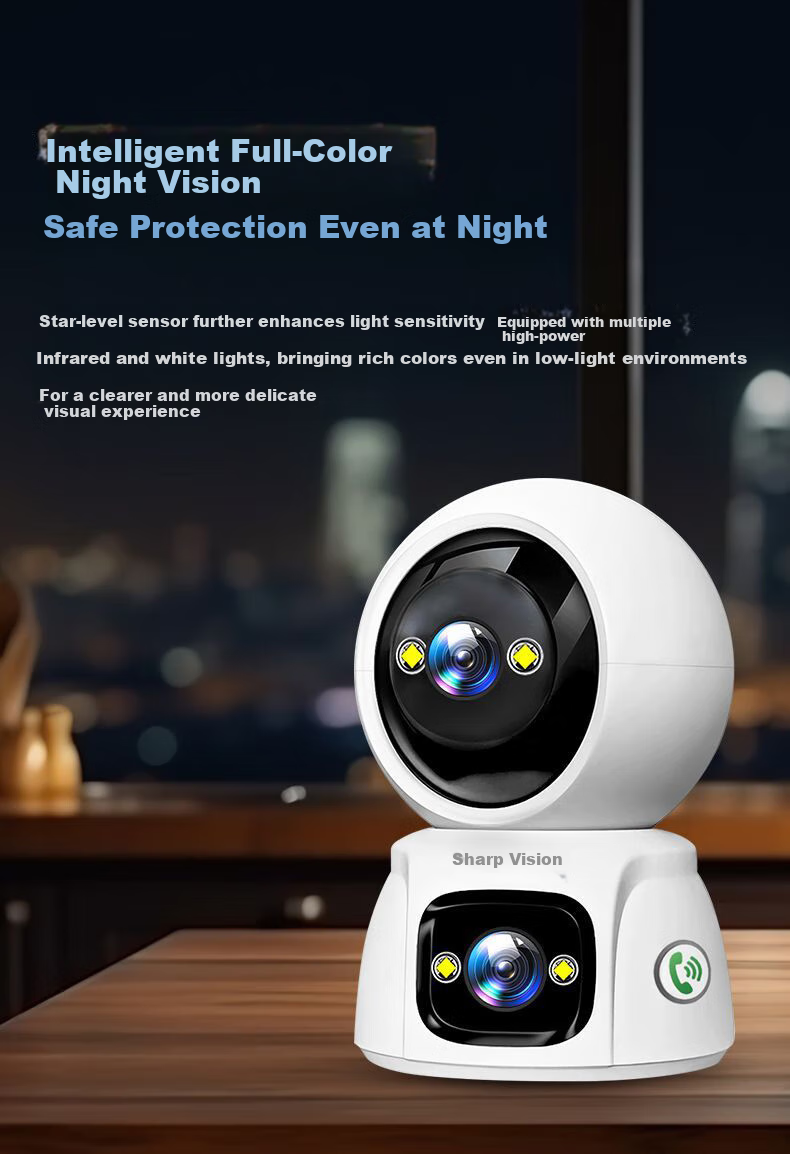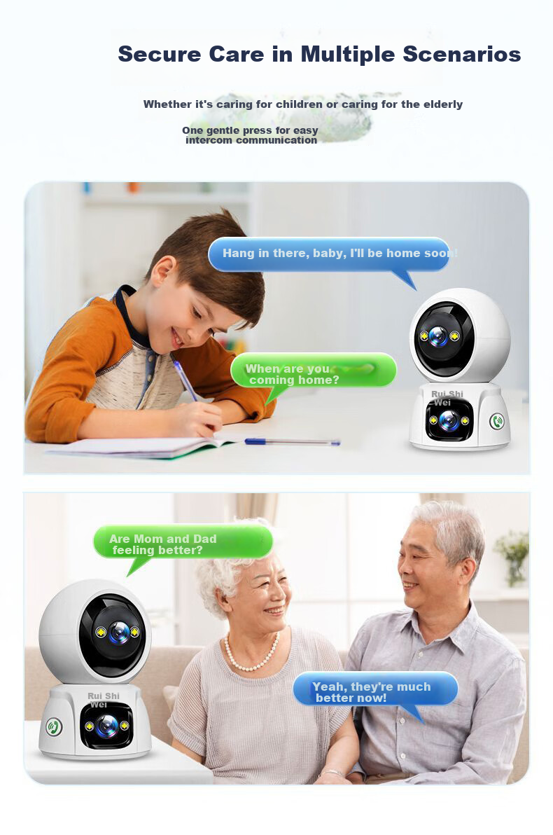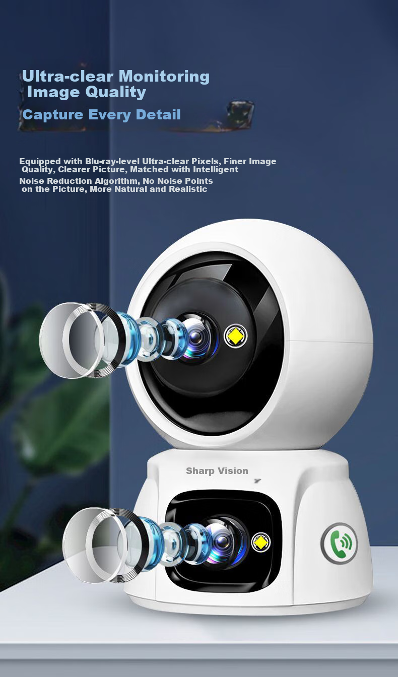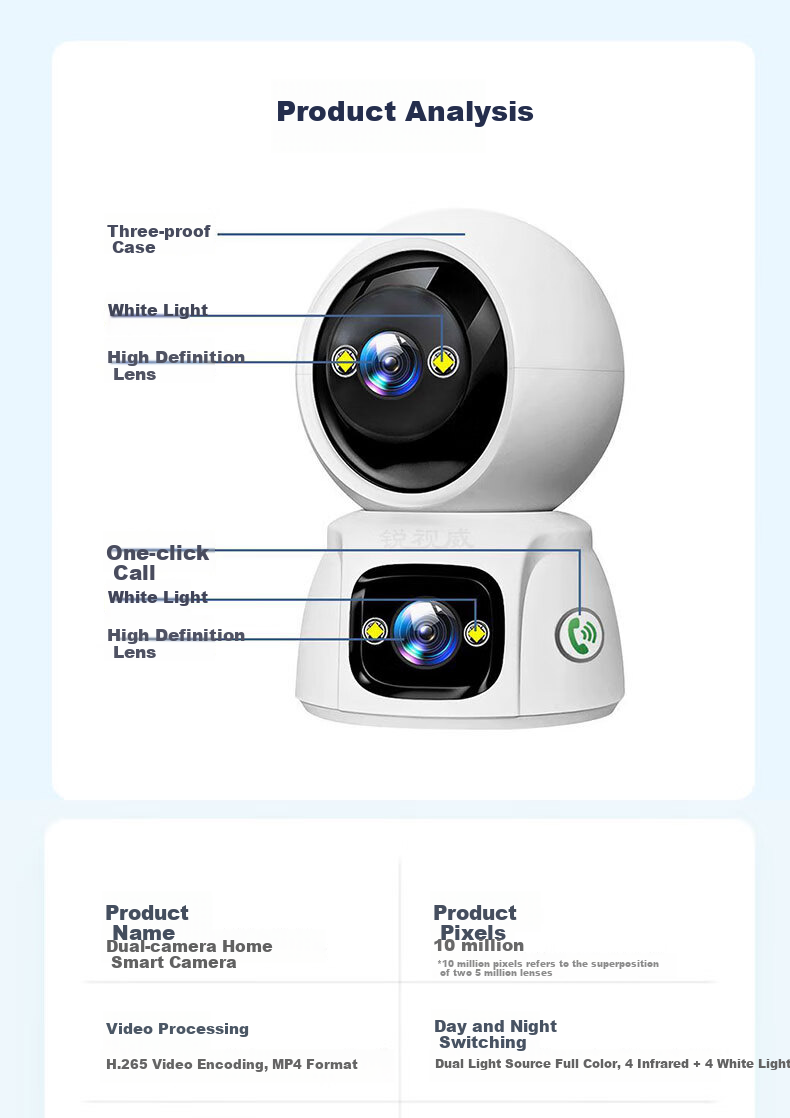 **Note:** The product offers various features such as dual-camera monitoring, intelligent detection, and remote communication, making it suitable for home and commercial surveillance applications.