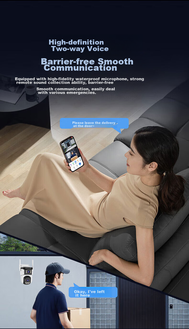 HD two-way audio, smooth communication, equipped with high-fidelity waterproof microphone for strong remote sound collection