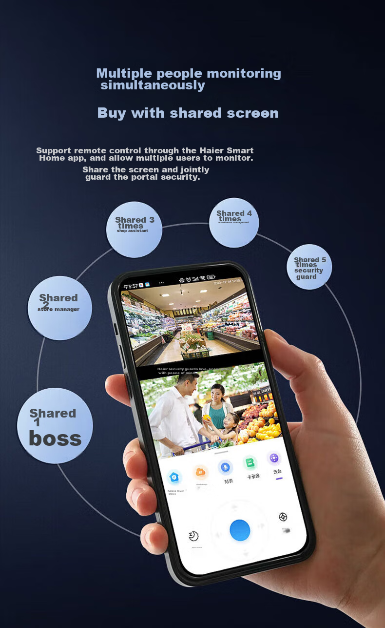 Multiple people can monitor simultaneously, share real-time images, support remote control via Haier Smart Home App, multiple people monitoring and image sharing