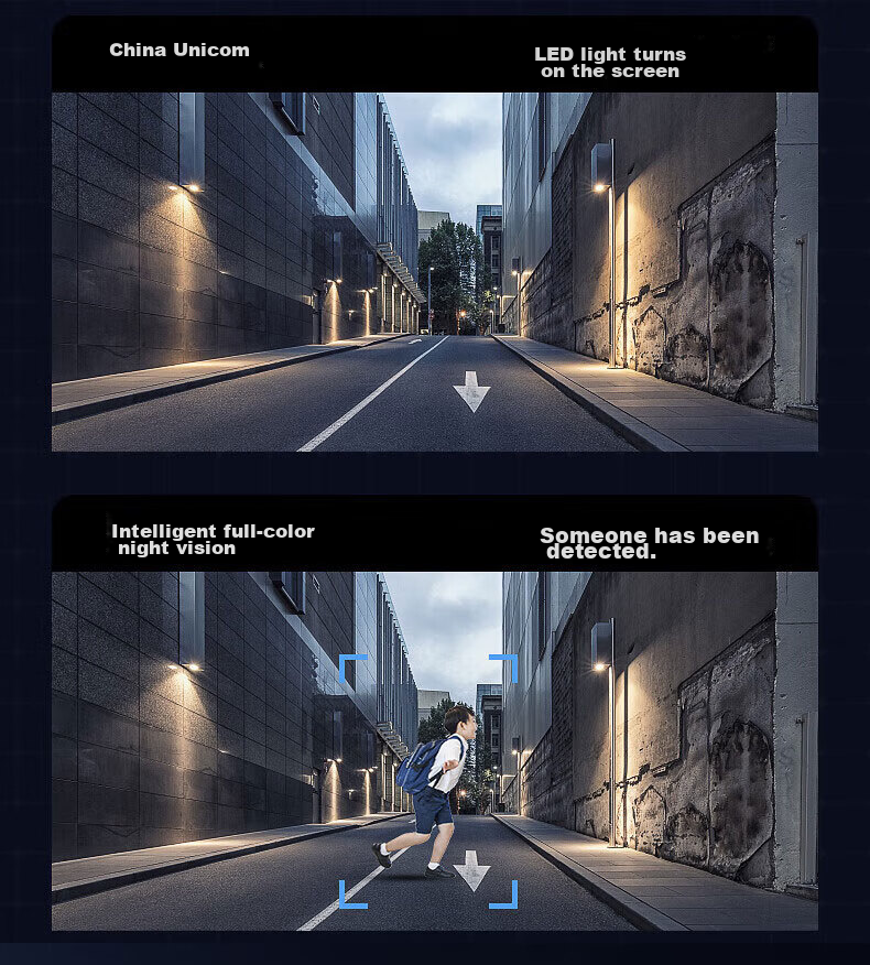 Full-color night vision, LED light on image, intelligent full-color night vision when people are detected