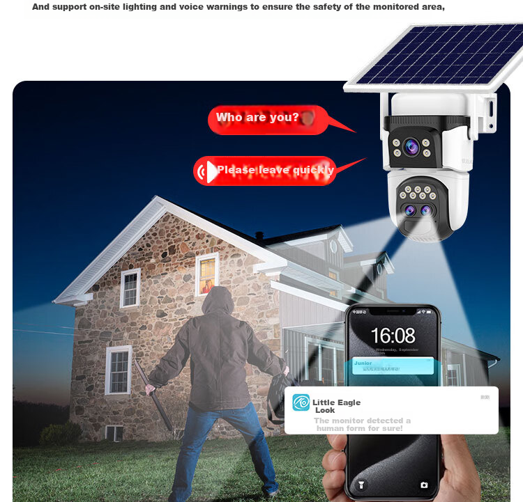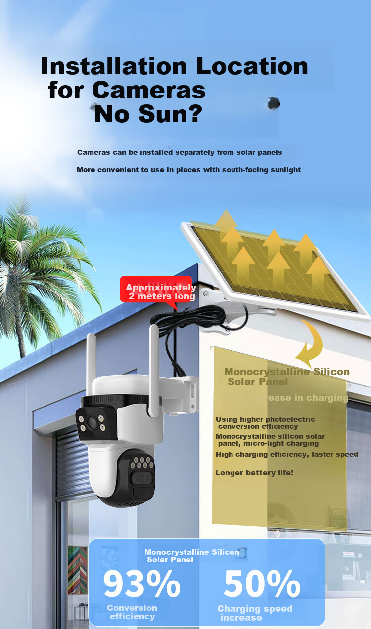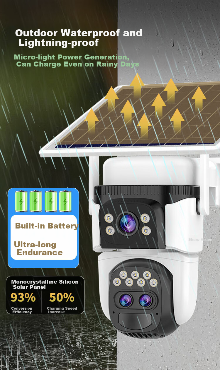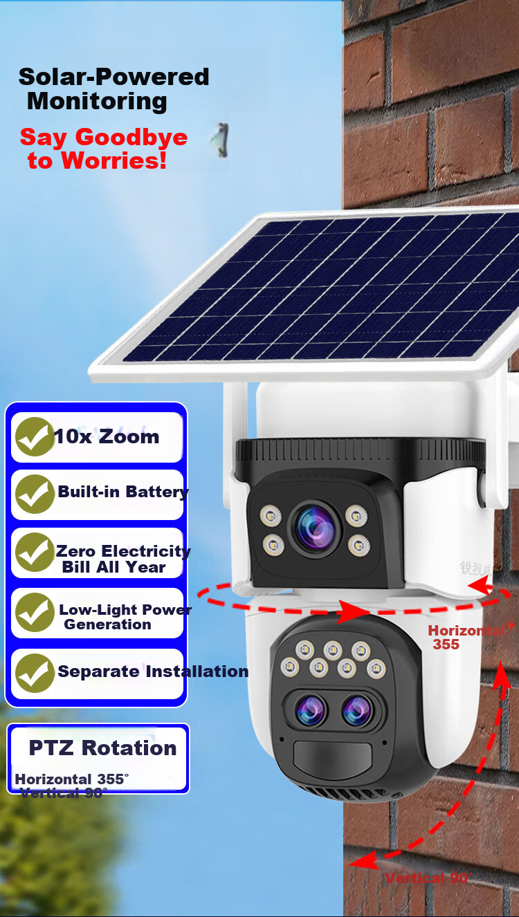 **Product Name:** Three-Lens Solar-Powered Surveillance Camera with Zoom