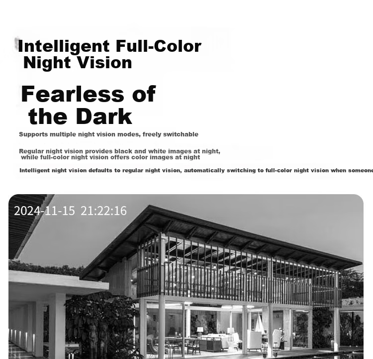 **Night Vision:** Intelligent full-color night vision mode for clear monitoring in low-light conditions