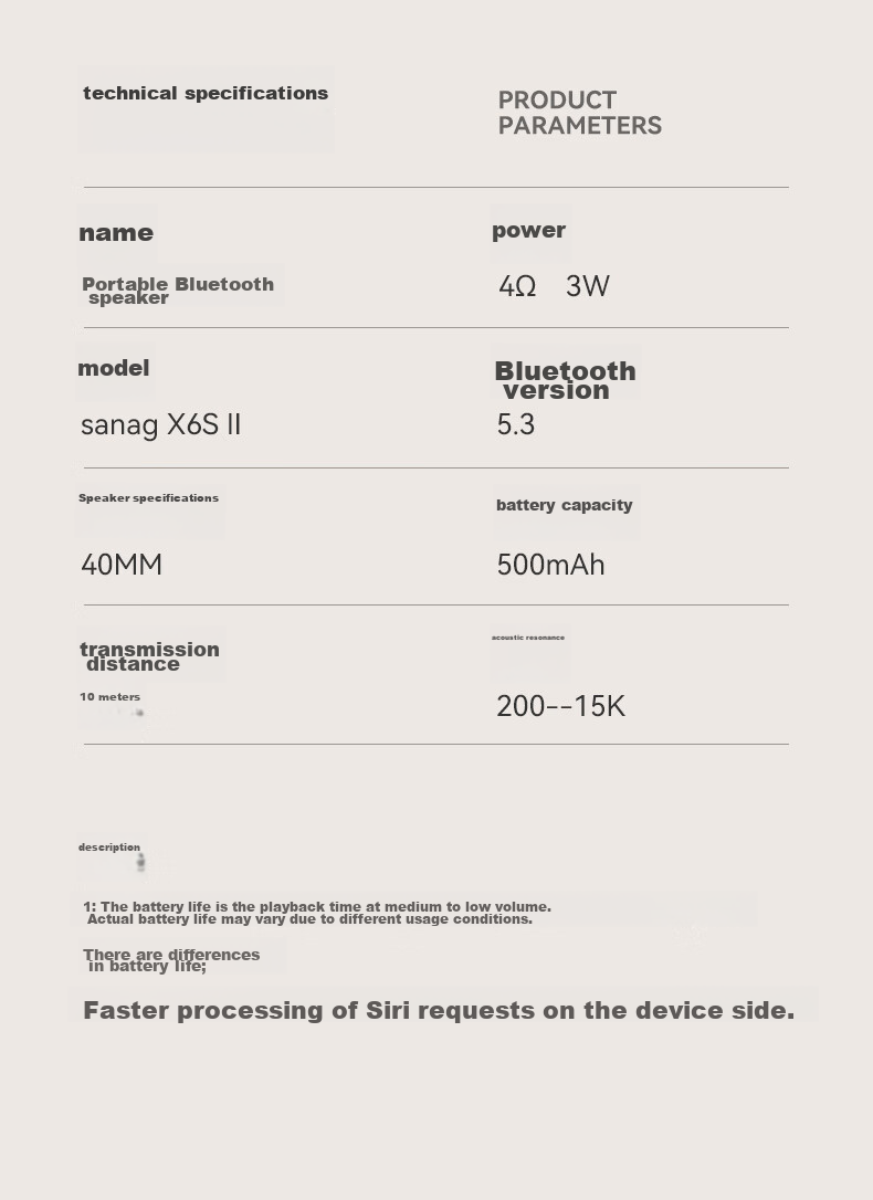 - **Note:** The battery life is based on playback at medium to low volume. Actual battery life may vary due to different usage conditions. The transmission distance of 10-15 meters is based on a direct line connection without obstacles, sourced from SANAG Acoustic Lab.