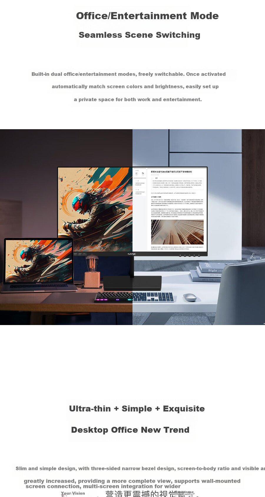 - Ultra-thin design with slim bezels