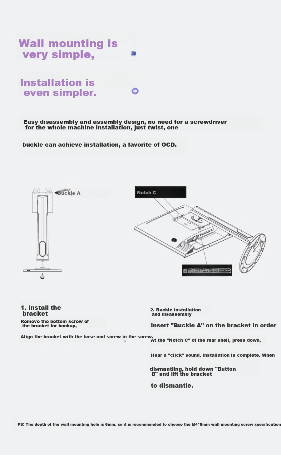 - For wall-mounting, use M4*8mm screws for easy installation with a depth of 6mm in the mounting holes.