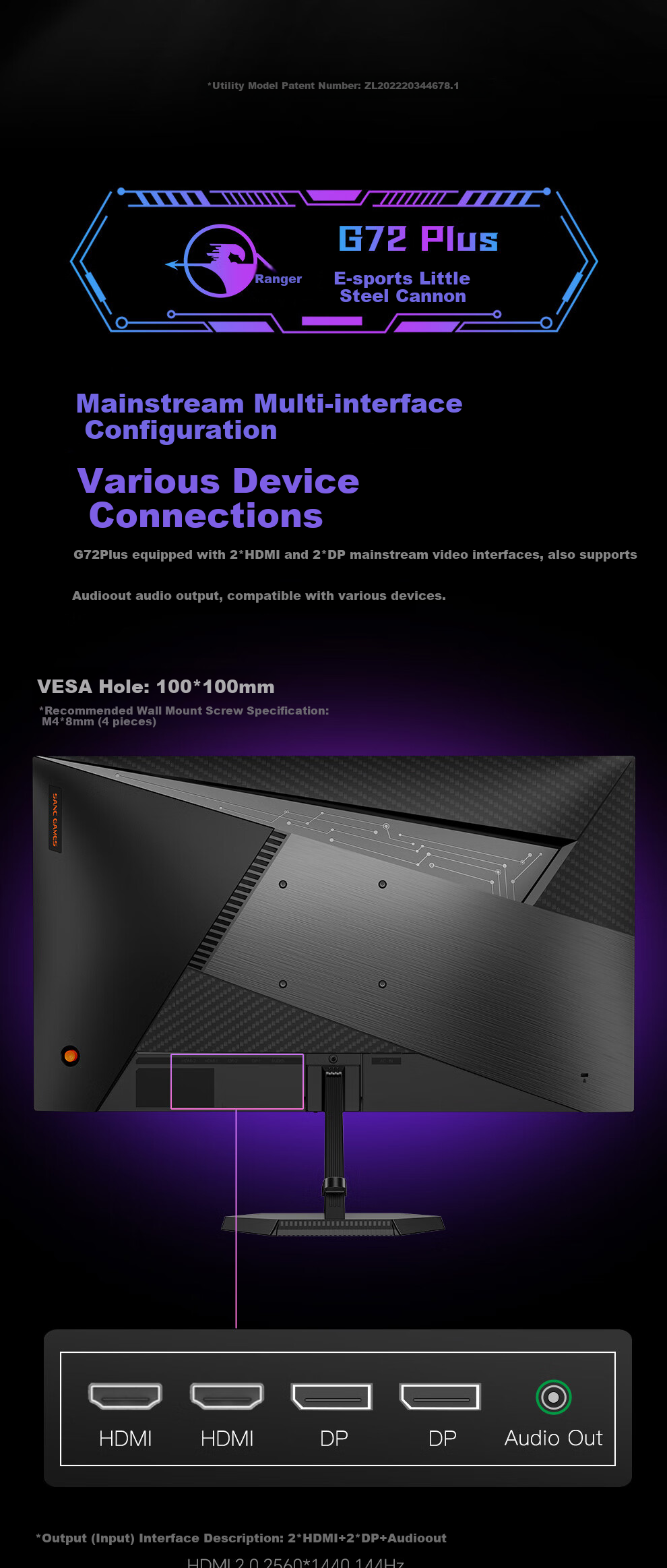 Packaging: Monitor host/stand/base/power adapter/DP signal cable/user manual (including certificate of conformity, warranty card)