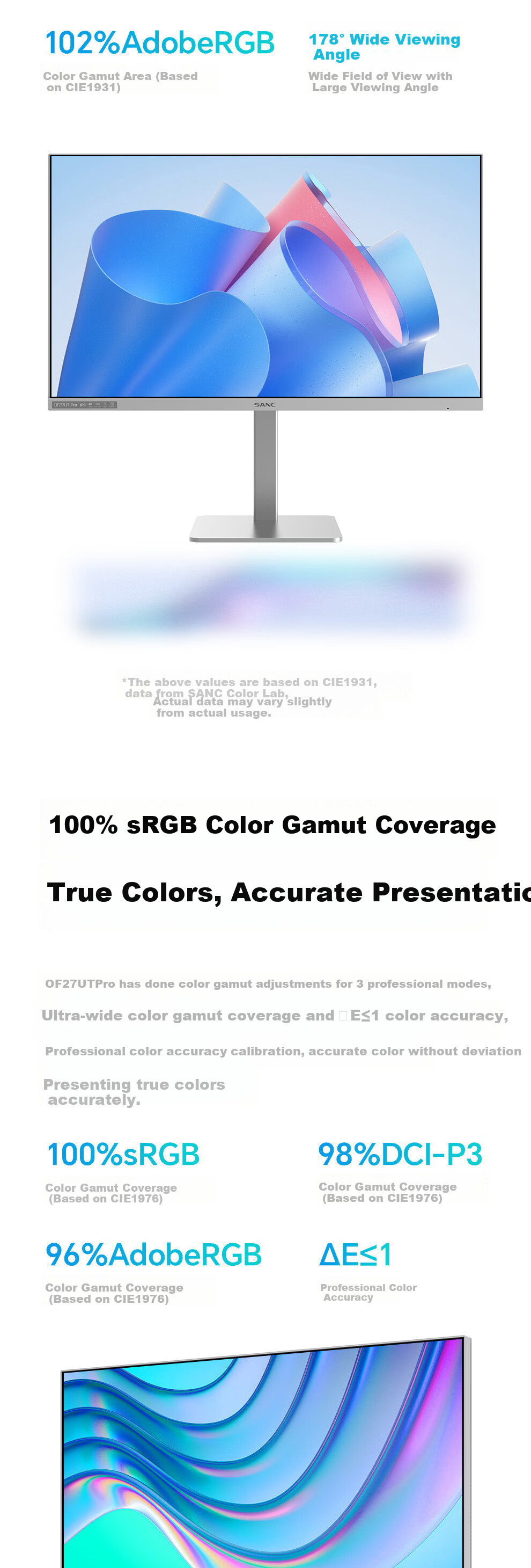**Color Accuracy:** Delta E ≤ 1, Delta E ≤ 1.5