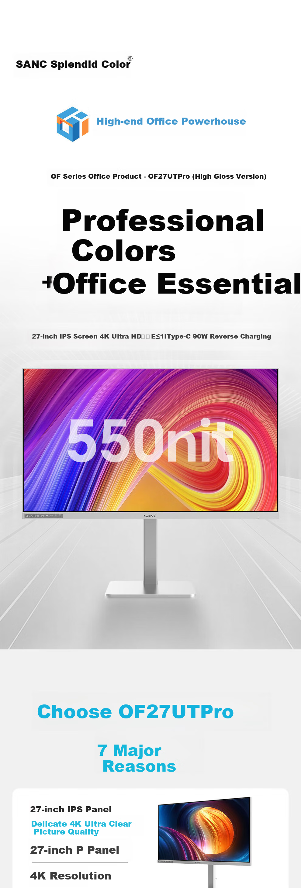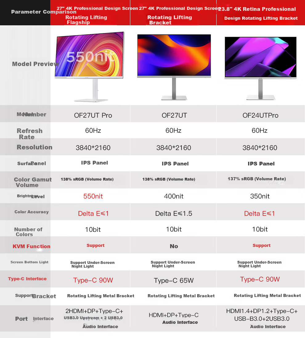 **Display:** 27-inch IPS screen, 4K Ultra HD, ΔE ≤ 1, Type-C 90W reverse charging, 550nit