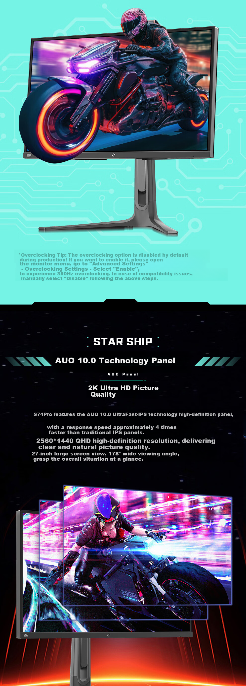 **Note:** Overclocking option is disabled by default during production. To enable, go to the monitor menu, enter "Advanced Settings" - Overclocking Settings - select "Enable" to experience 380Hz overclocking. If compatibility issues arise, manually select "Disable" following the above process.