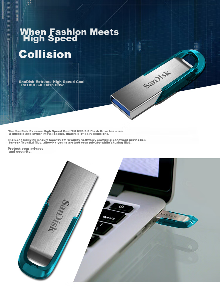SanDisk, where "San" stands for flash and "Disk" signifies extraordinary, offers fast and large storage options with models like DDC4, CZ880, CZ74, CZ73, and CZ550. These USB flash drives provide high-speed data transfer, original factory chips, and data security encryption. They come with a 5-year warranty and capacities ranging from 32GB to 1TB. Compatible with various devices, these drives are ideal for business, file sharing, travel, study, entertainment, multimedia, and bidding purposes.**Product Specifications:**