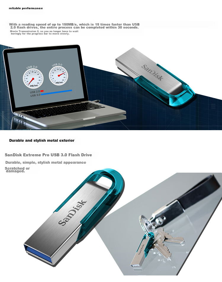 - Reliable performance with read speeds up to 150MB/s, 15 times faster than USB 2.0 flash drives