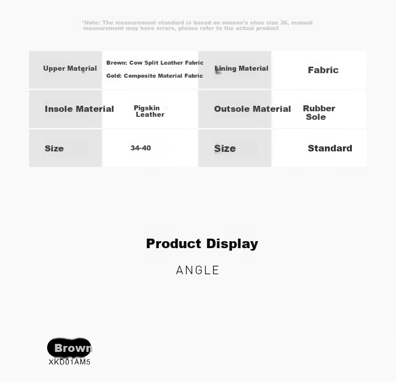 *Note: Measurements are based on size 36 for women's shoes and may have slight discrepancies due to manual measurement. Please refer to the actual product for accuracy.