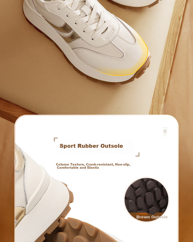 Sole Material: Sporty rubber sole with column texture for durability, anti-slip, and comfort