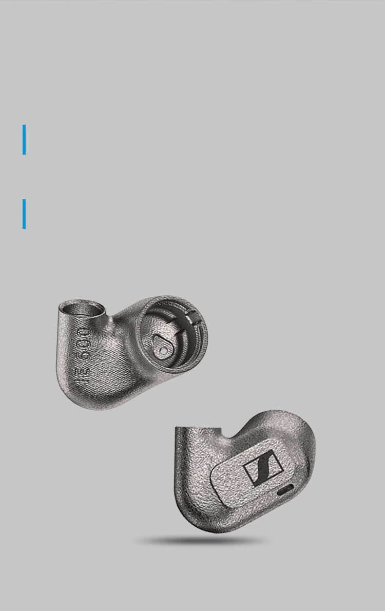 每一只IE 600耳机外壳均由高精度设备3D打印制作而成, 细腻精巧 经久耐用的耐腐蚀材料