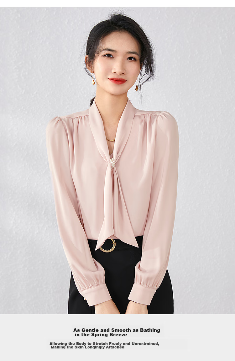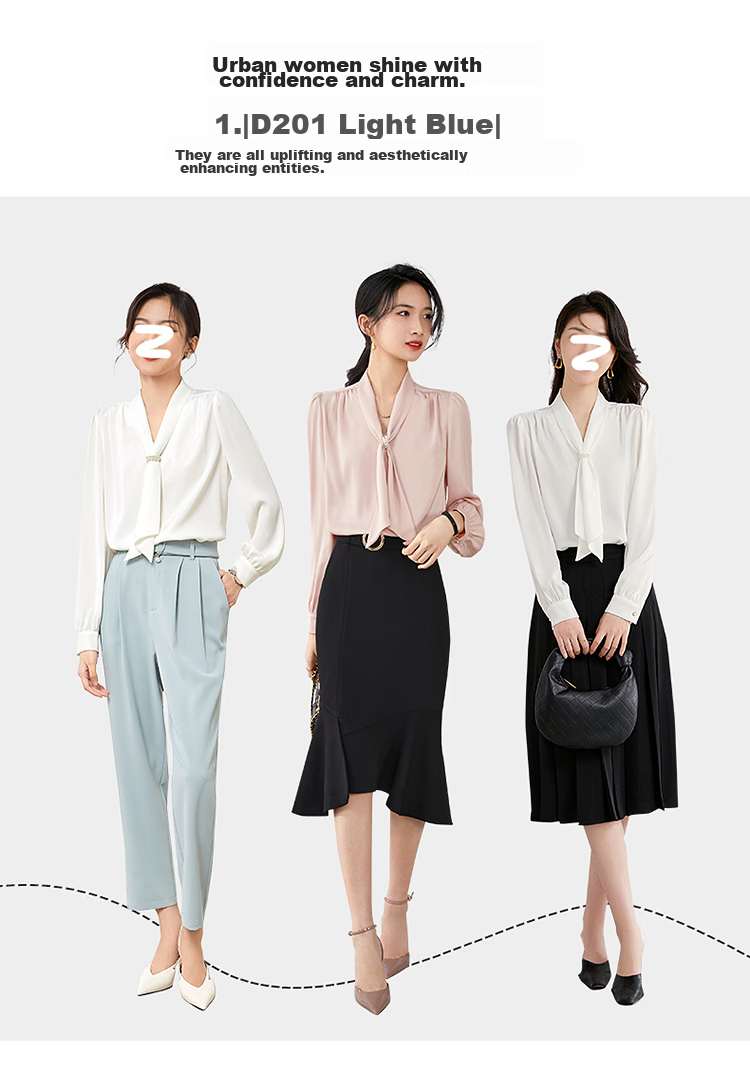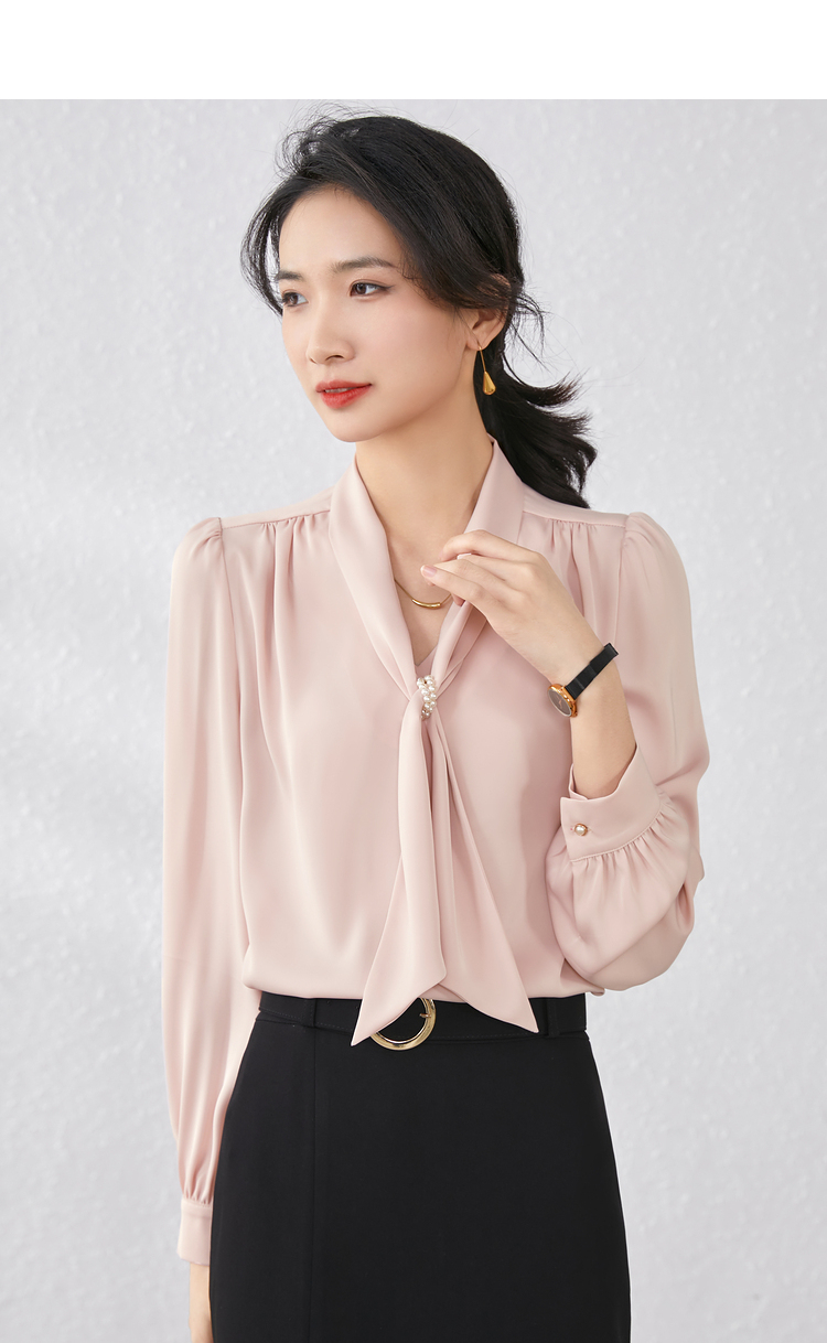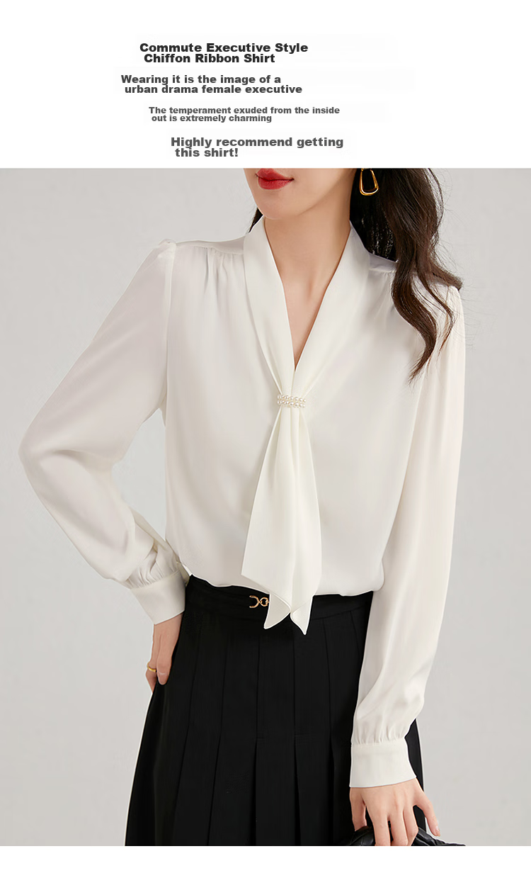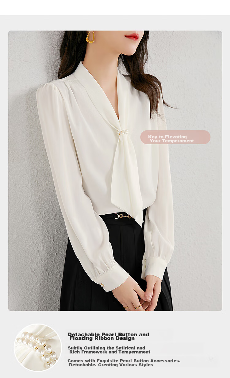Description: Commuting executive temperament ribbon collar shirt, exuding the image of a urban drama female executive as soon as you put it on, emitting a charming temperament from the inside out. Highly recommended to get your hands on this shirt!