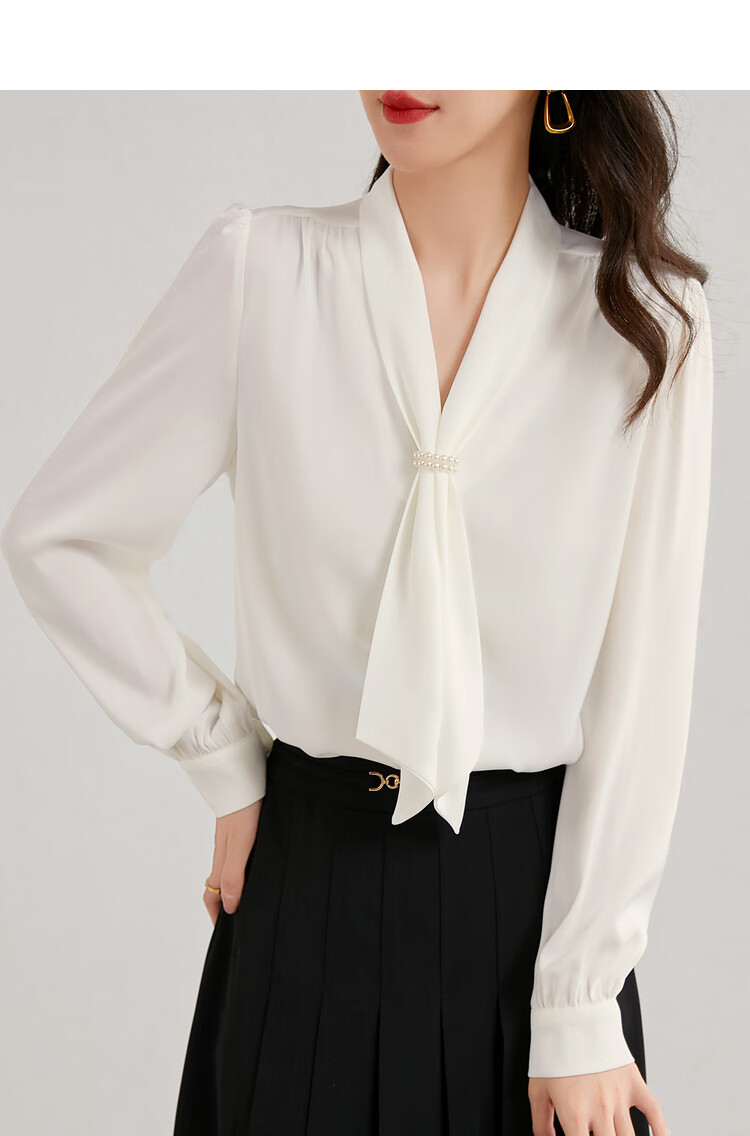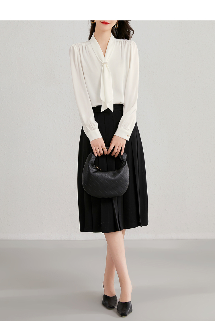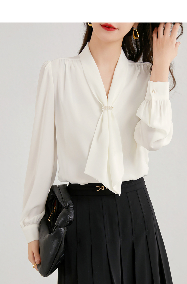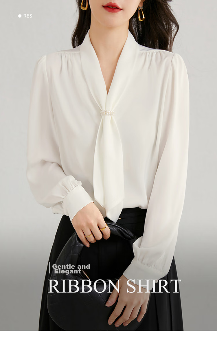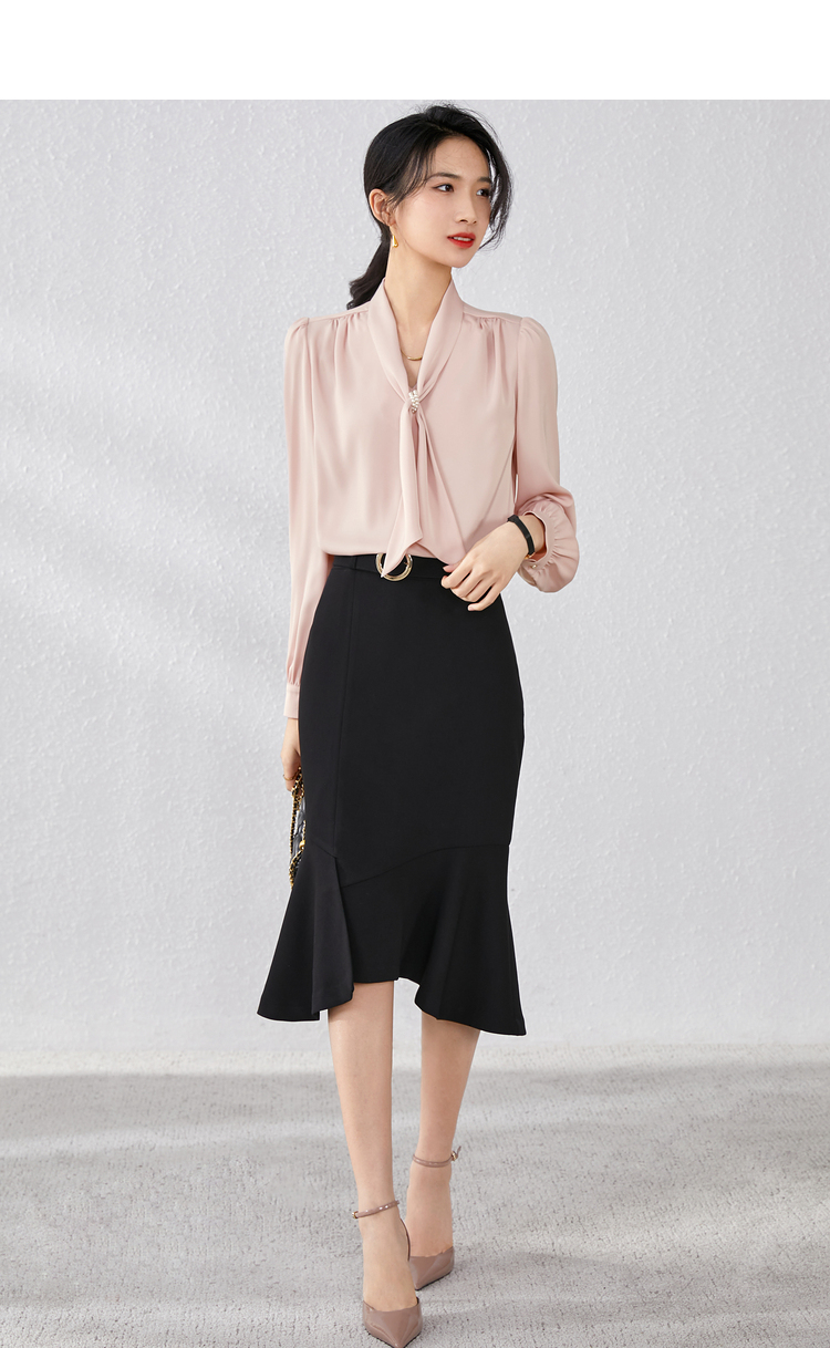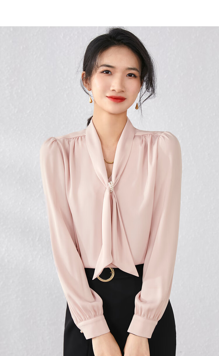 Description: Commuting executive temperament ribbon collar shirt, exuding the image of a urban drama female executive as soon as you put it on, emitting a charming temperament from the inside out. Highly recommended to get your hands on this shirt!