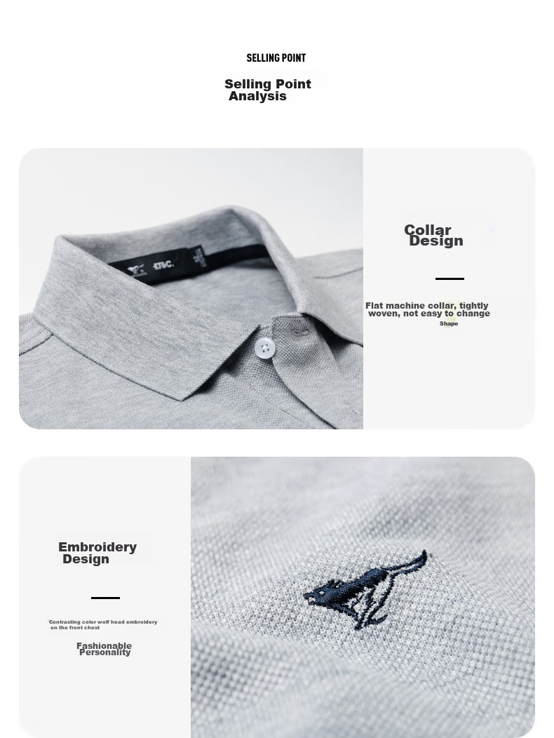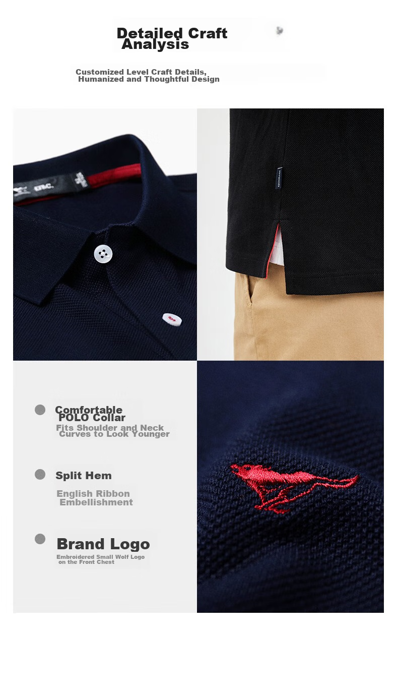**Details:** Customized craftsmanship, comfortable polo collar, embroidered small wolf logo on the chest