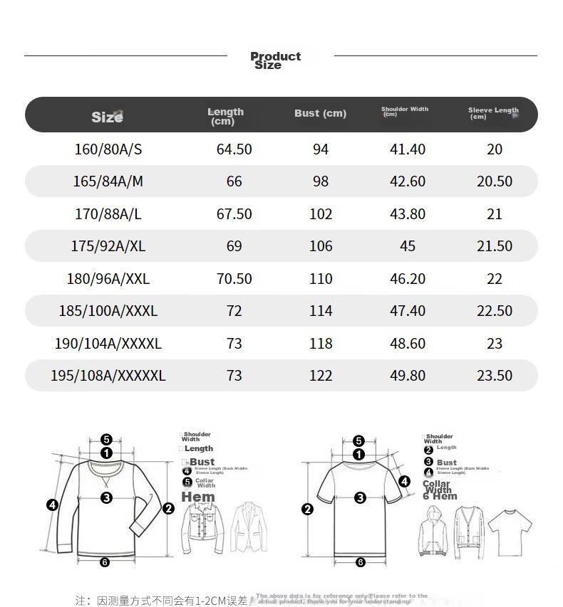 - 185/100A/XXXL: Length 72cm, Chest 114cm, Shoulder 47.40cm, Sleeve 22.50cm