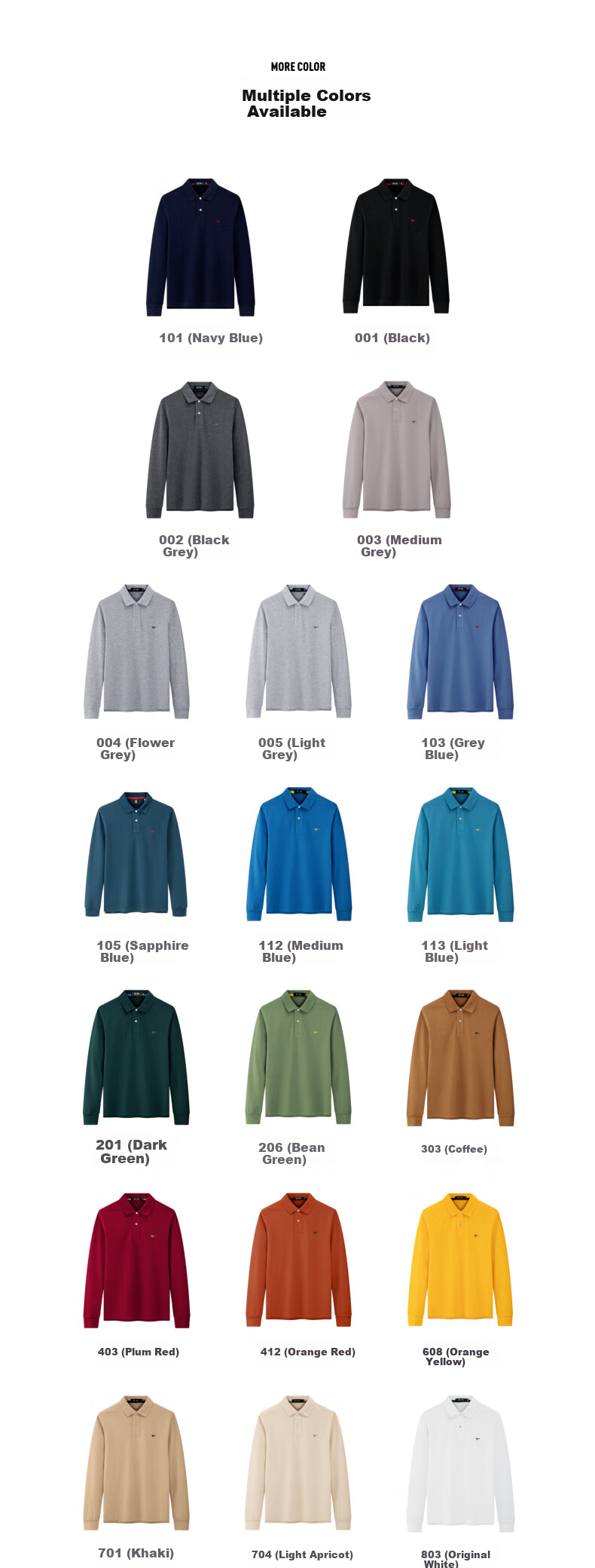 SEPTWOLVES Men's Long-Sleeve T-Shirt, Antibacterial, Temperature-Resistant, Easy-Care, Business Casual, Turn-Down Collar, Color-Fast Polo, Comfortable, Skin-Friendly, Breathable
