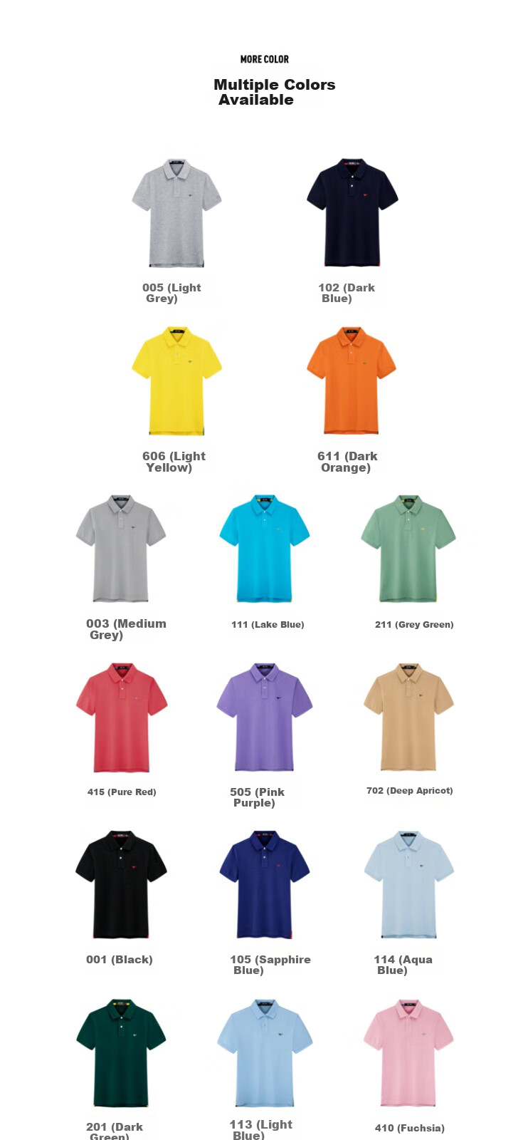 **Colors Available:** 005 (Light Gray), 102 (Dark Blue), 606 (Light Yellow), and more