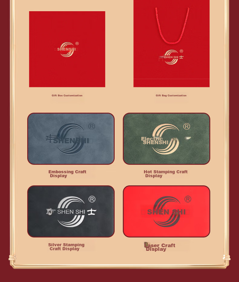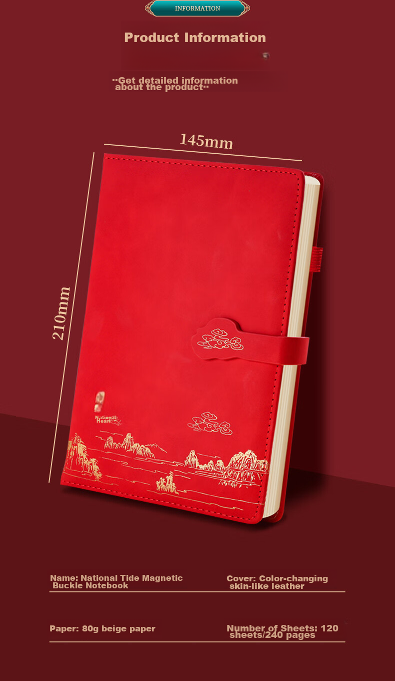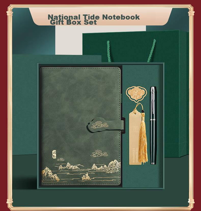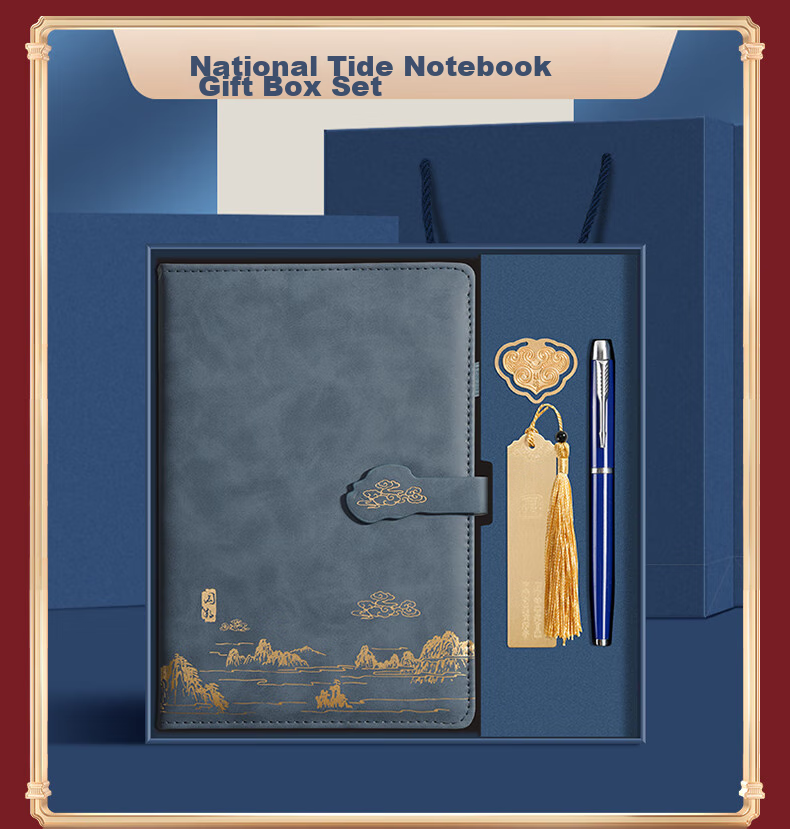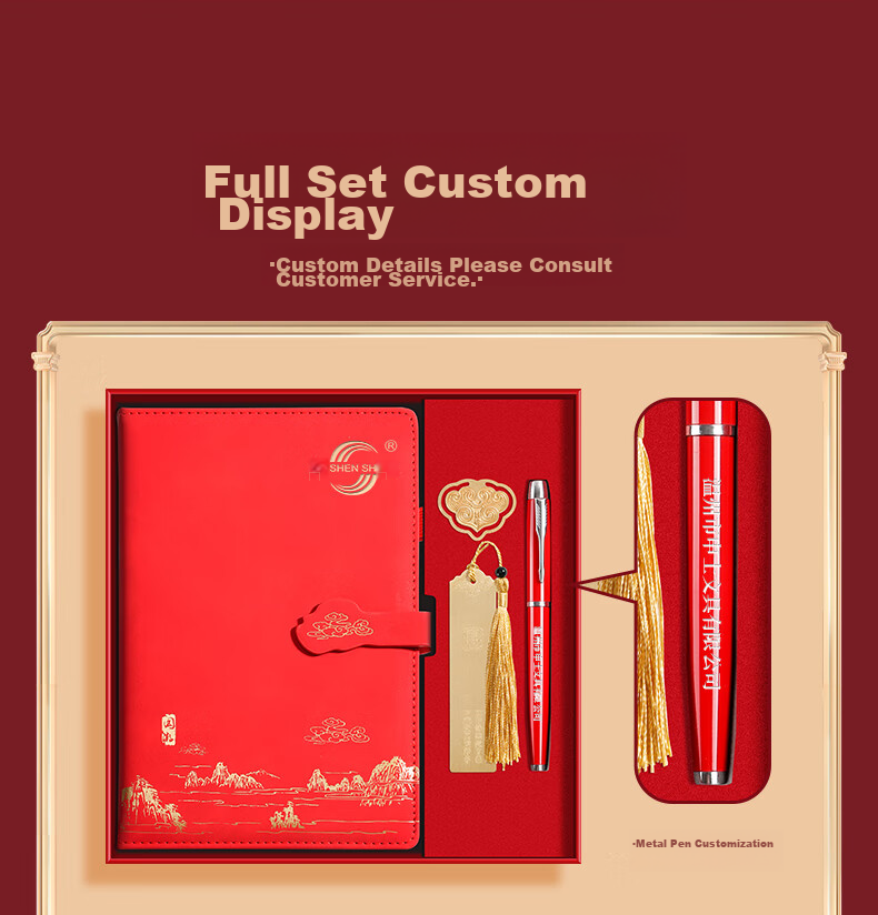 Features: Customizable national trend series notebook, notebook gift box, supports full customization. Crafted with ingenuity and quality, ideal for gifting or personal use. Customization options include metal pen, gift box, gift bag, embossing, hot stamping, gold/silver/laser engraving techniques. Available in classic national style colors. Set includes national trend notebook gift box, metal signature pen, antique brass bookmark, innovative magnetic buckle design, thick smooth writing paper, ribbon bookmark for easy reference, practical pen holder for convenient note-taking. Exquisite cover with gold stamping, delicate leather texture, and clear gold effect. Enhances office efficiency and productivity. Ideal for recording and organizing information.